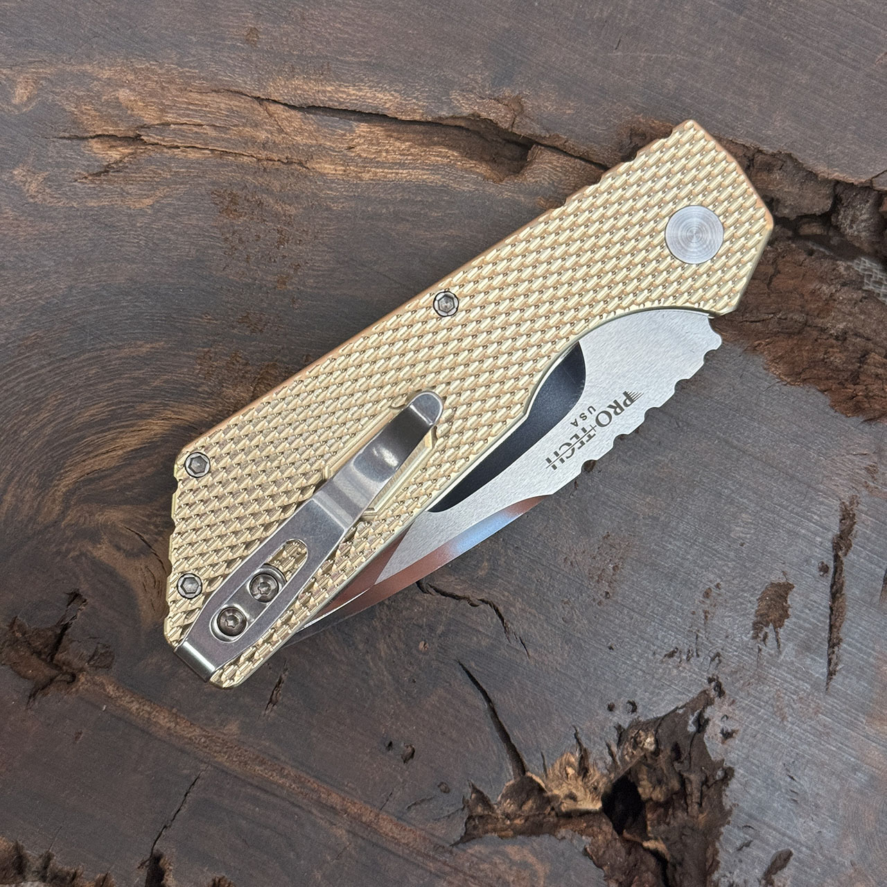 The Pro-Tech Strider PT is back and better than ever in the new PT Plus! Coming in with several upgrades including a slightly bigger design with improved ergonomics, an updated spring, a recessed button, and a mini deep carry pocket clip! A fantastic re-introduction of a popular Pro-Tech Stider collaboration knife.
