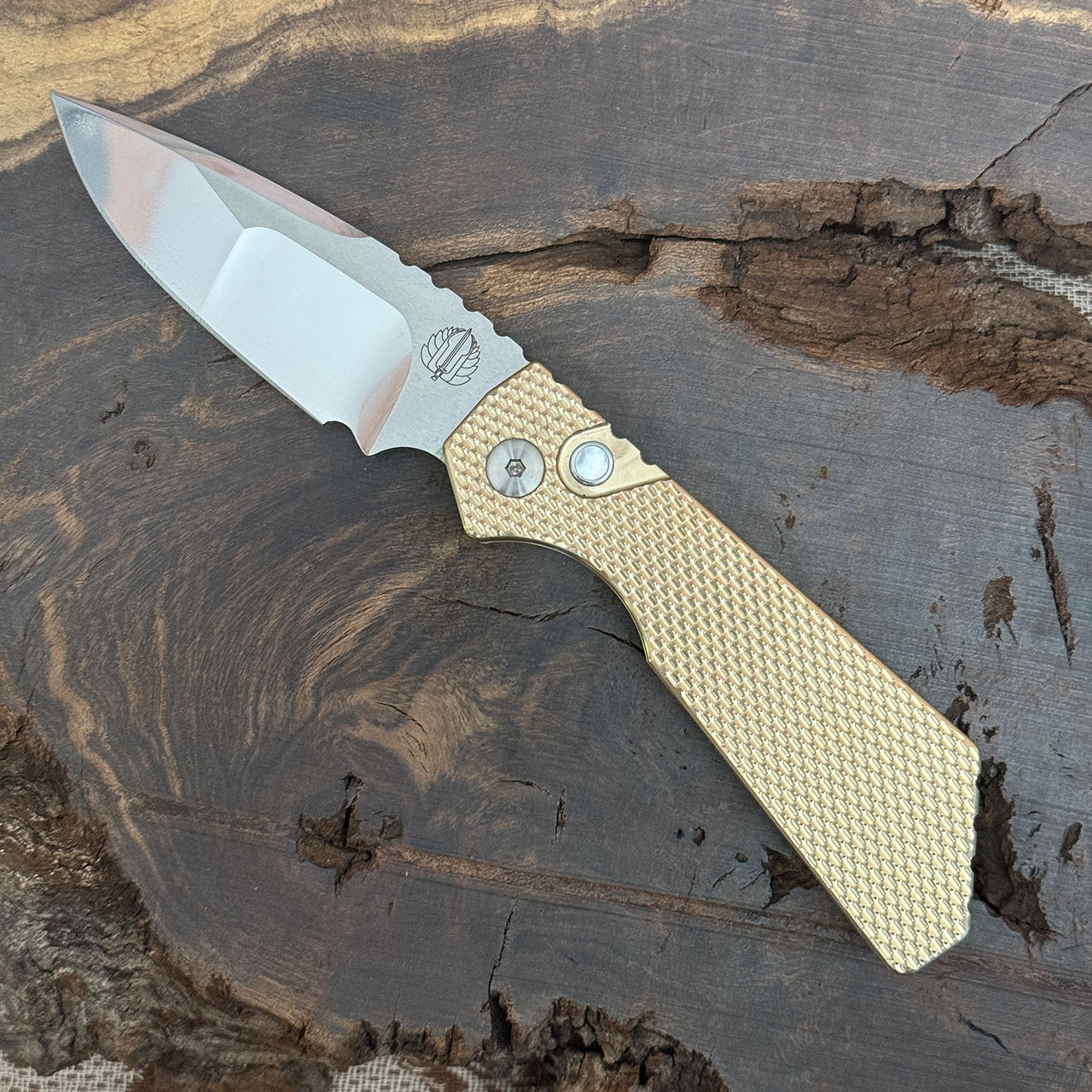 Pro-Tech 2024 Strider PT+ Custom 005 Auto Textured AlBronze Handle Hand Ground Mirror Polish Mike Irie Blade MOP Button