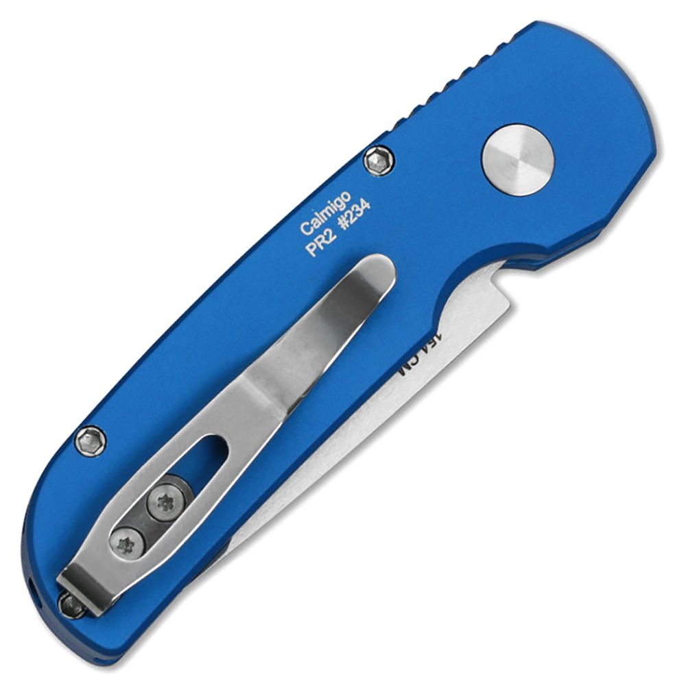 Pro-Tech Calmigo Auto Solid Blue Handle Satin Blade 2203-BLUE
