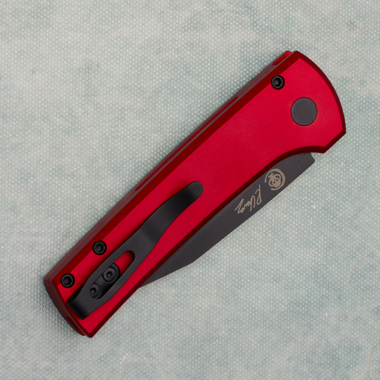 This collaboration between Pro-Tech and Chaves does not disappoint, red aluminum handles with DLC MagnaMax blade. Black deep carry pocket clip, and hardware. Brand new in box.