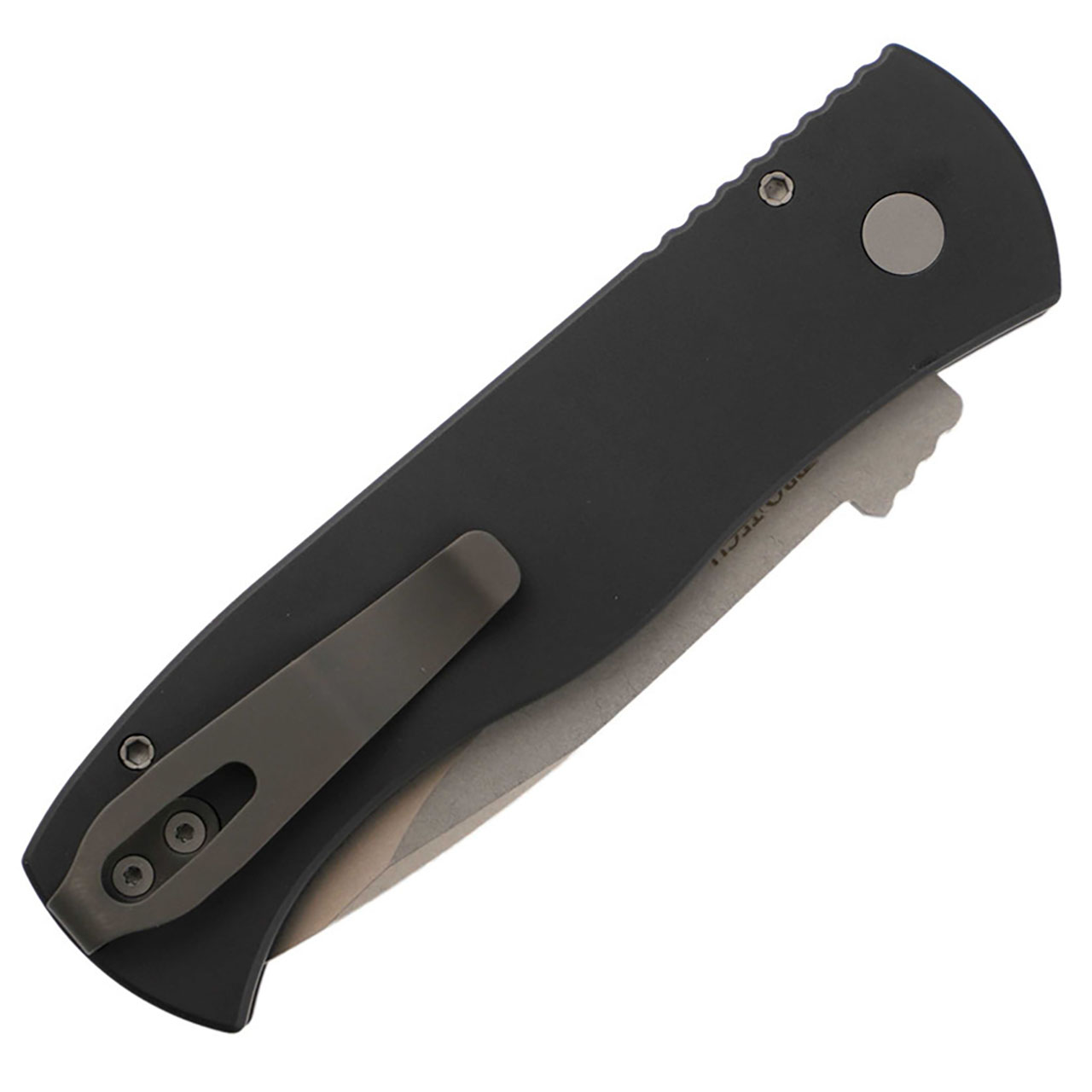 Pro-Tech Emerson CQC7 Auto Spear Point Black Aluminum Handles Stonewashed 20CV Spear Point Blade E7A01-20CV