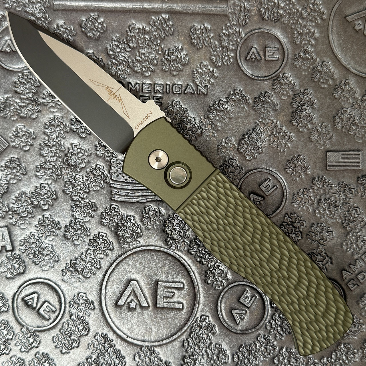 Pro-Tech Emerson CQC7 Auto Spear Point Green Jigged Aluminum Handles 2 Tone DLC/Satin 20CV Blade Blade Show 2024