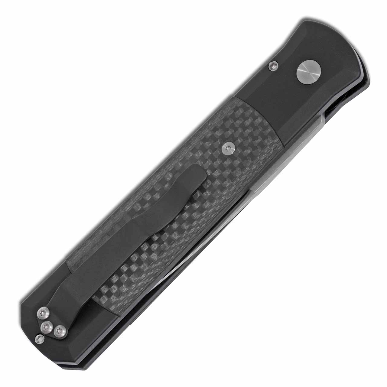 Pro-Tech Godfather Black Handle w/ Carbon Fiber Inlays Satin Blade 901