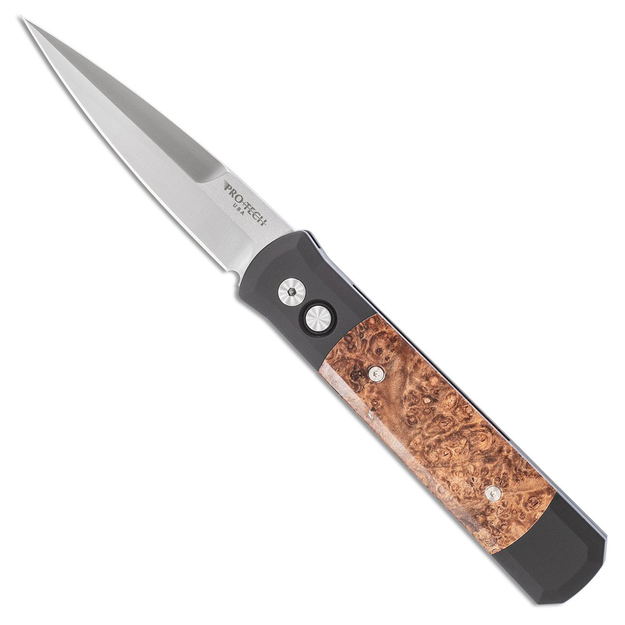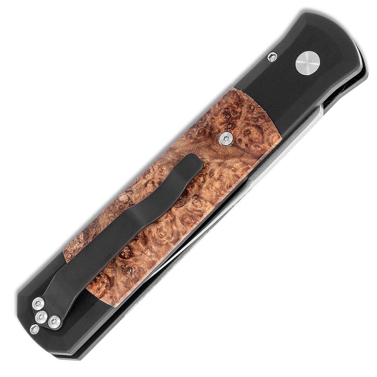 Pro-Tech Godfather Black Handle w/ Maple Burl Wood Inlays Satin Blade 906