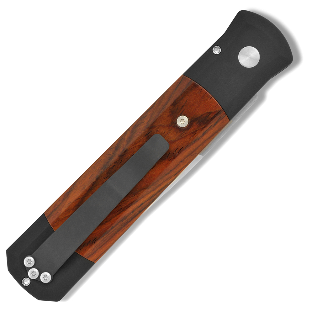 Pro-Tech Godfather Black Handle w/ Cocobolo Wood Inlays Satin Blade 906-C