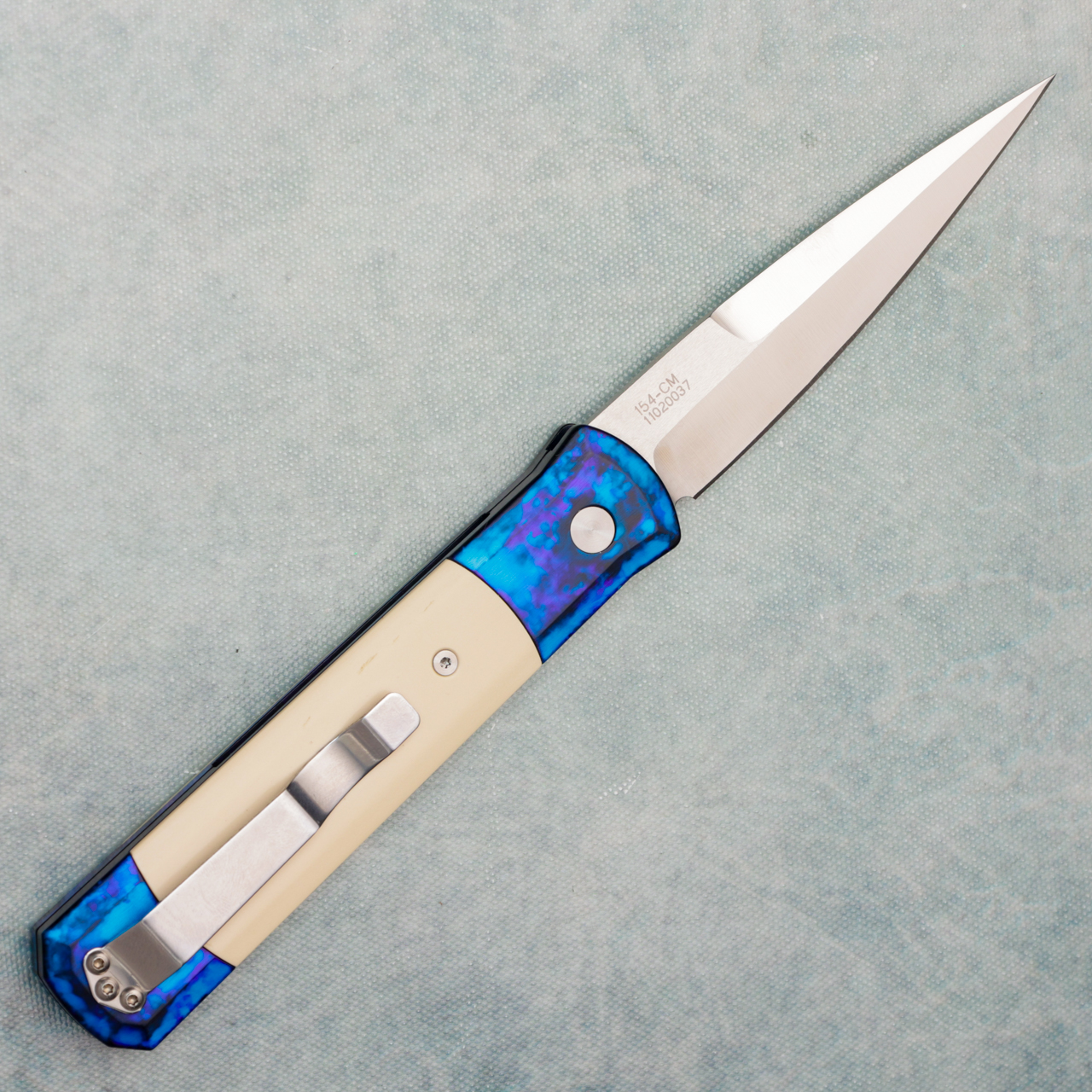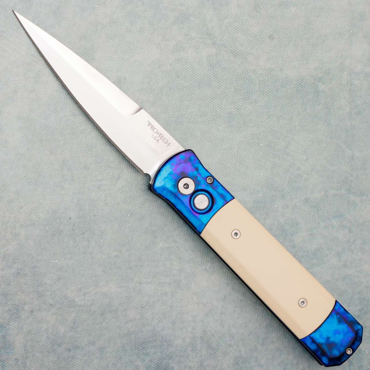 Pro-Tech Godfather Jazz Anodized Handle w/ Ivory Micarta Inlays Satin Blade 910 (Pre-owned)