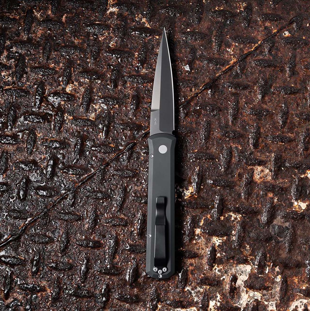 The design of the Protech Godfather automatic was influenced by the original Italian Stilleto knives. It features Protech's signature bayonet style blade, a slim handle and premium materials. Pocket clip for tip up carry. The Godfather utilizes a coil spring for impressive push button action that never grows old. The build, fit and finish of the Godfather is exceptional, something that is true of all Protech knives.