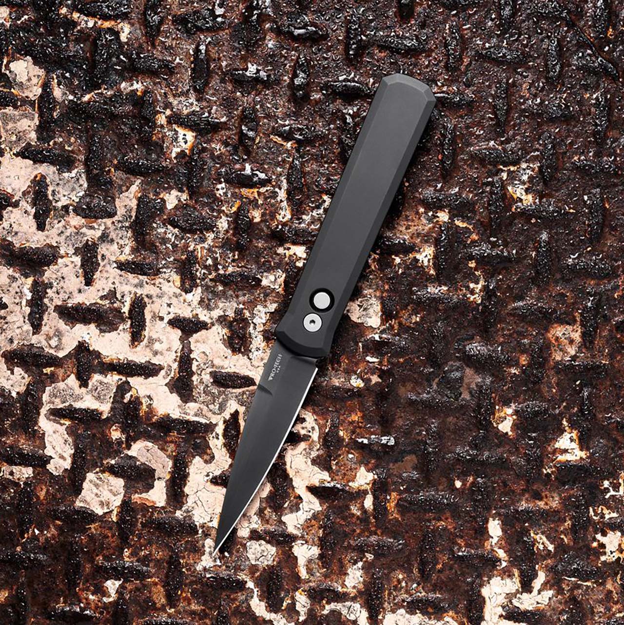 Pro-Tech Godfather Solid Black Handle Smoky Grey DLC Blade 921-SG