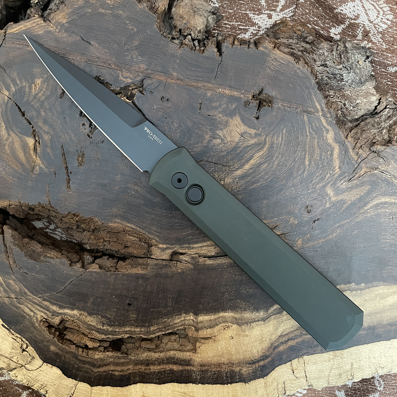 The design of the Protech Godfather automatic was influenced by the original Italian Stilleto knives. It features Protech's signature bayonet style blade, a slim handle and premium materials. Pocket clip for tip up carry. The Godfather utilizes a coil spring for impressive push button action that never grows old. The build, fit and finish of the Godfather is exceptional, something that is true of all Protech knives.