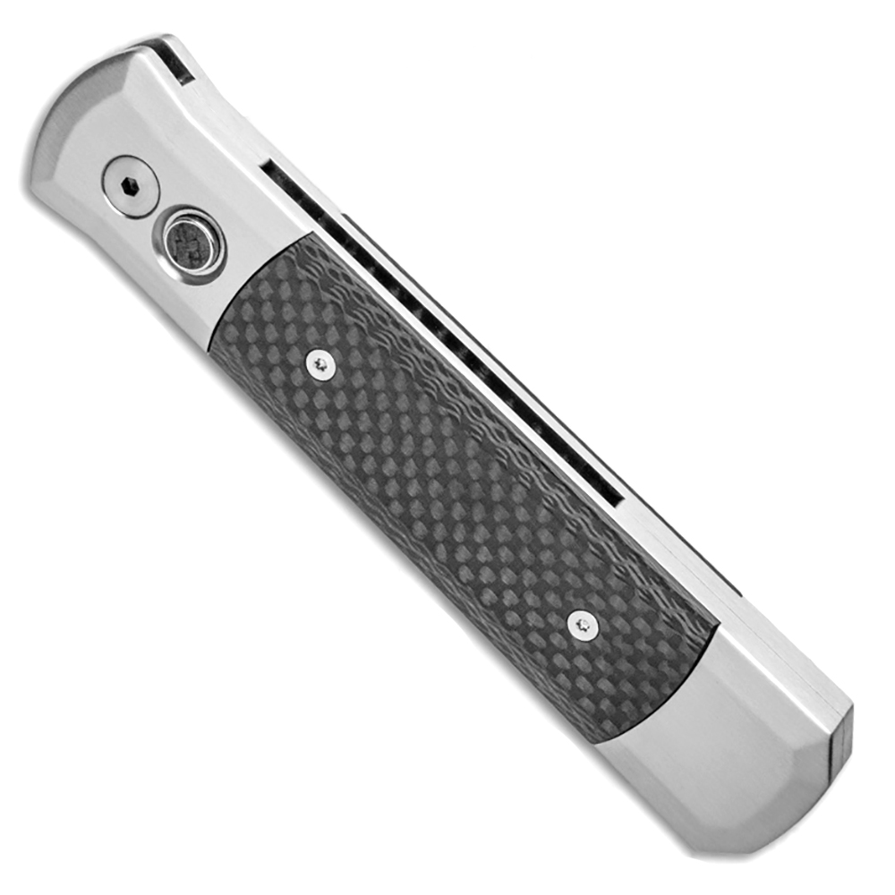 The design of the Protech Godfather automatic was influenced by the original Italian Stilleto knives. It features Protech's signature bayonet style blade, a slim handle and premium materials. Pocket clip for tip up carry. The Godfather utilizes a coil spring for impressive push button action that never grows old. The build, fit and finish of the Godfather is exceptional, something that is true of all Protech knives.