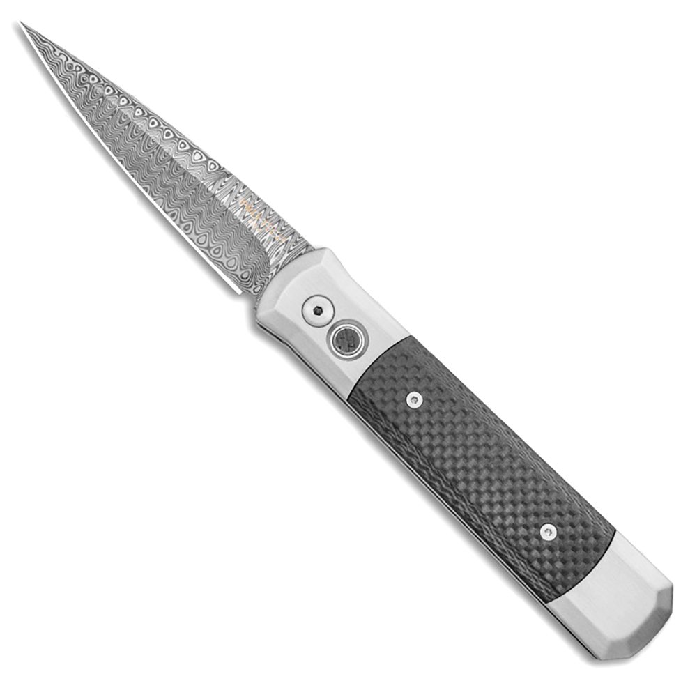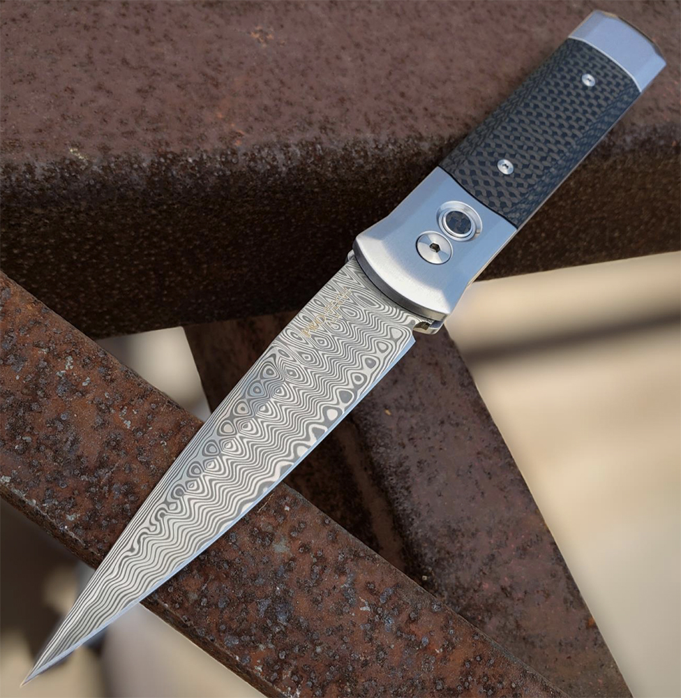 Pro-Tech Godfather Steel Custom w/ Carbon Fiber Handle Hand Ground Damasteel Blade 900-STDM