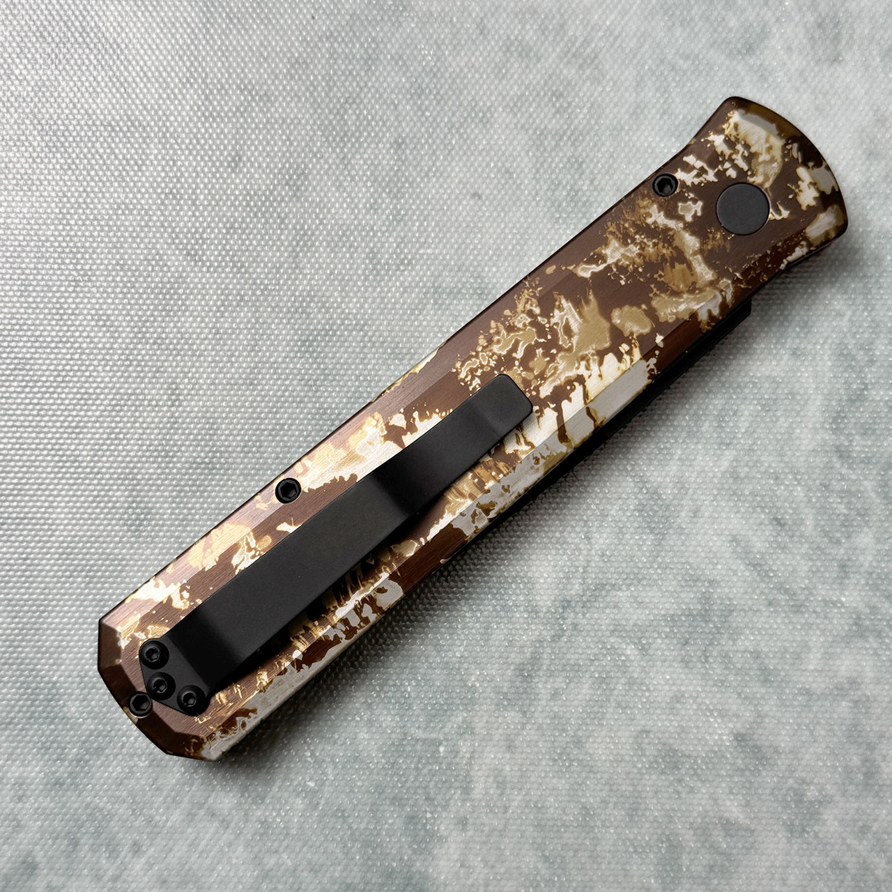 Pro-Tech Godfather Unique Anodized Brown/Tan Handle DLC Blade 3