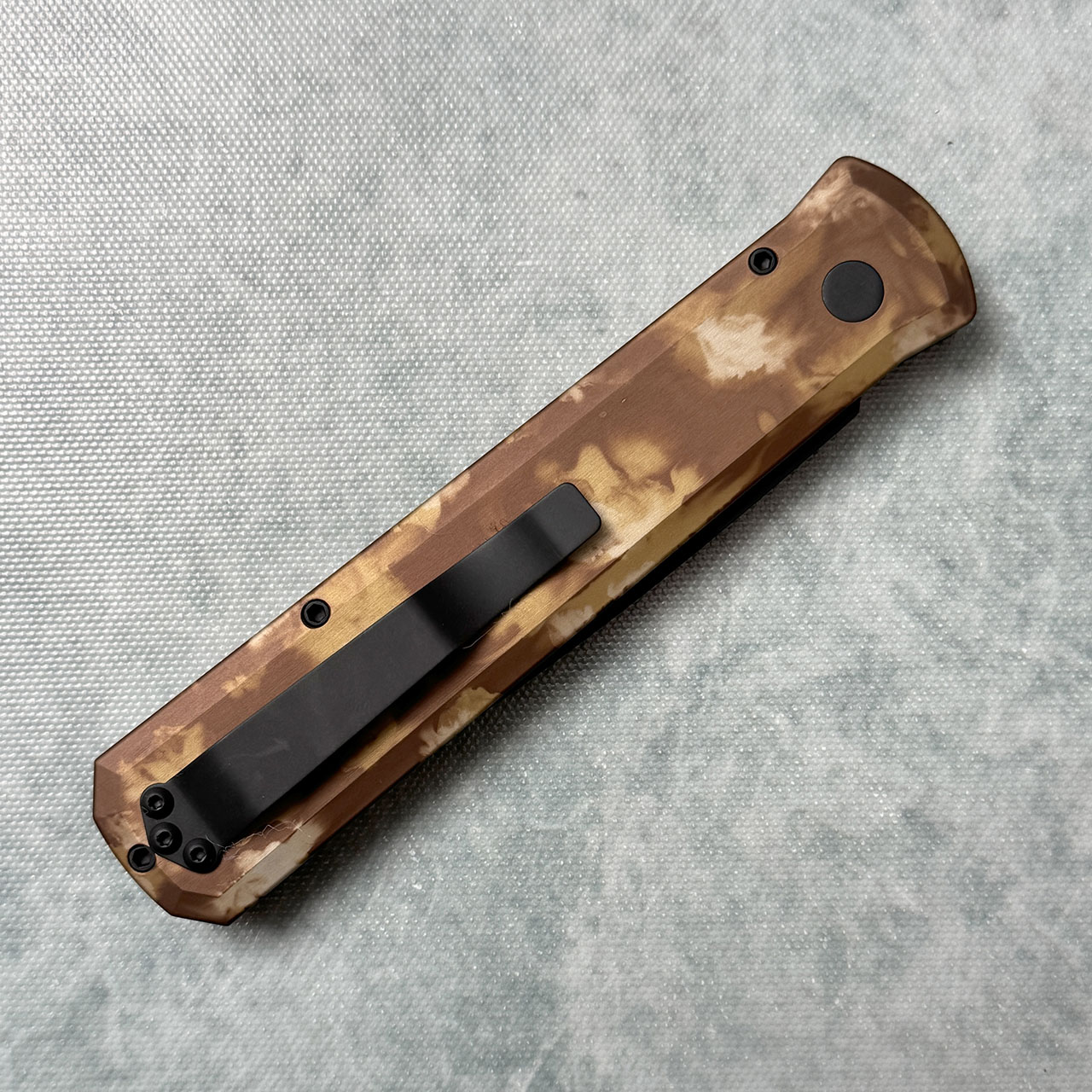 Pro-Tech Godfather Unique Anodized Brown/Tan Handle DLC Blade