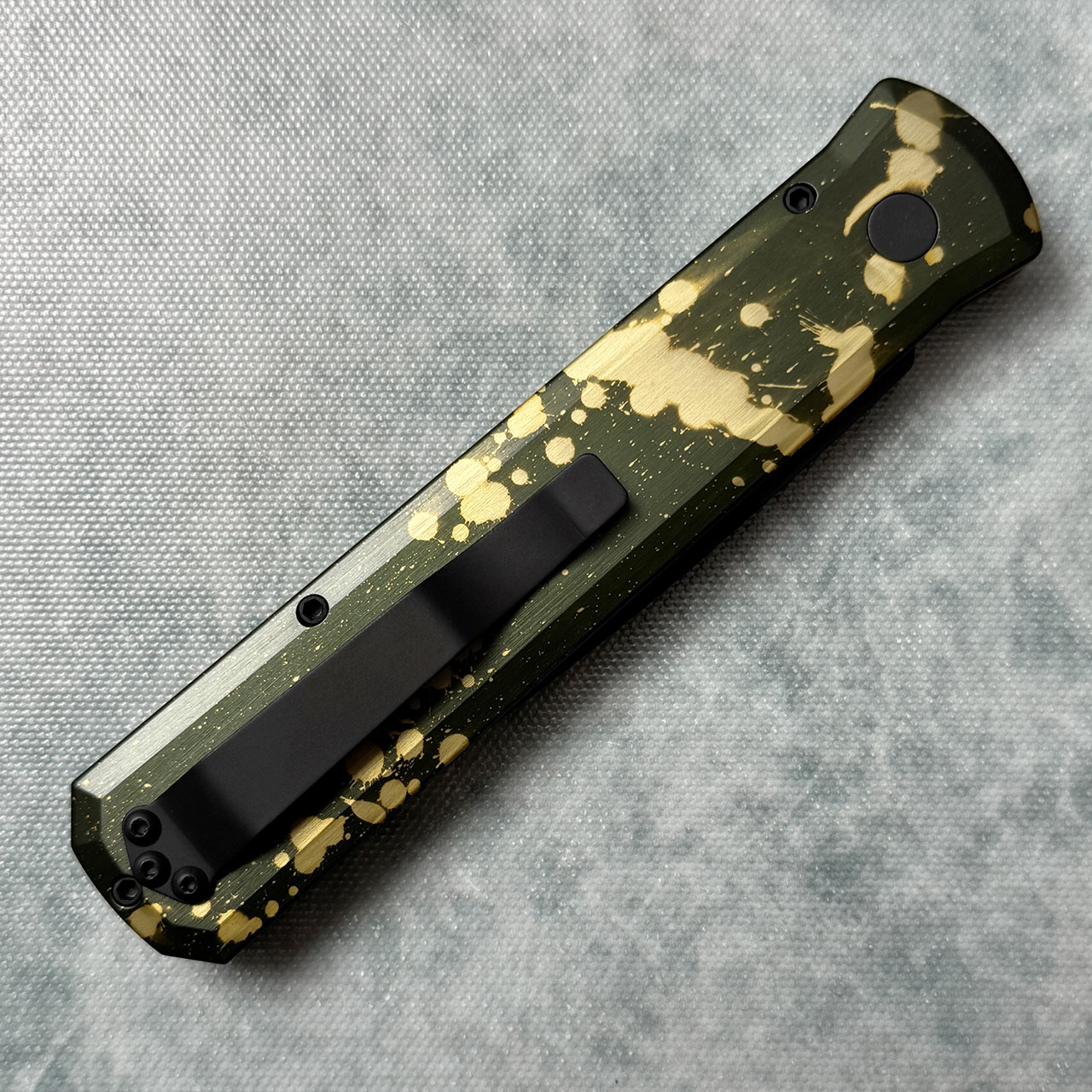 Pro-Tech Godfather Unique Anodized Dark Green/Tan Handle DLC Blade