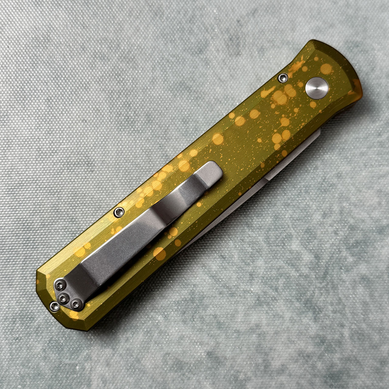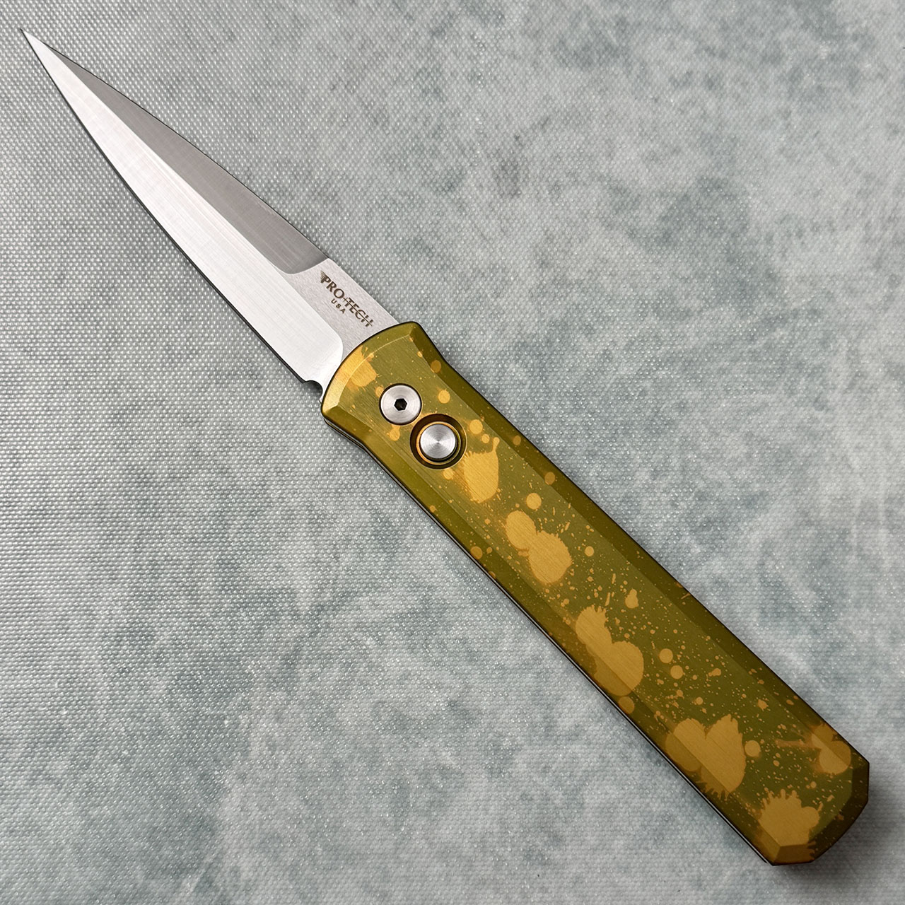 Pro-Tech Godfather Unique Anodized Green/Yellow Handle Satin Blade