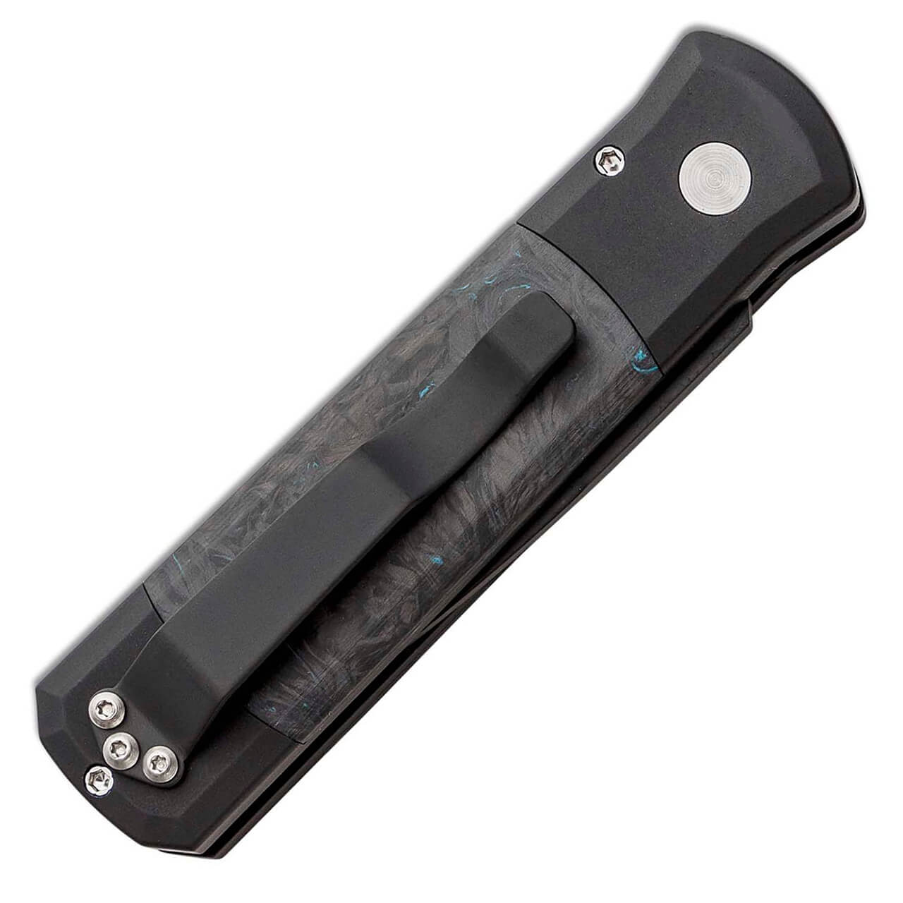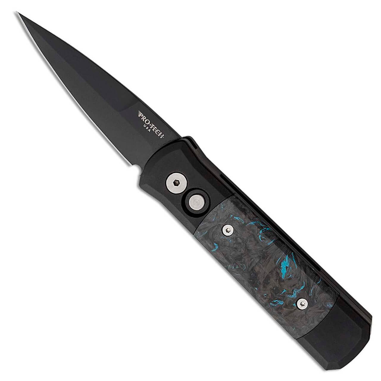 Pro-Tech Godson Black Handle w/ Blue Dark Matter Fat Carbon Inlays DLC Blade 7FC31