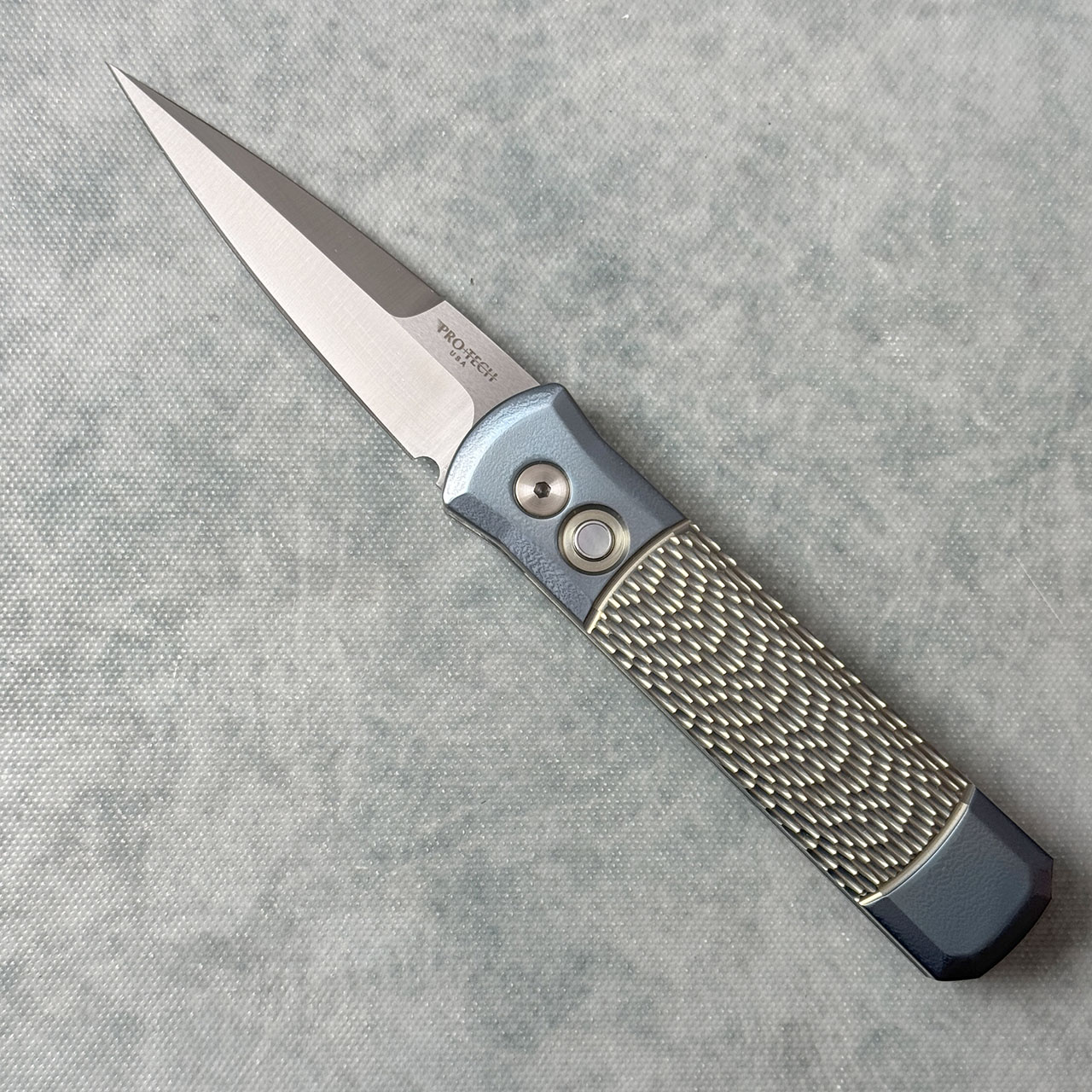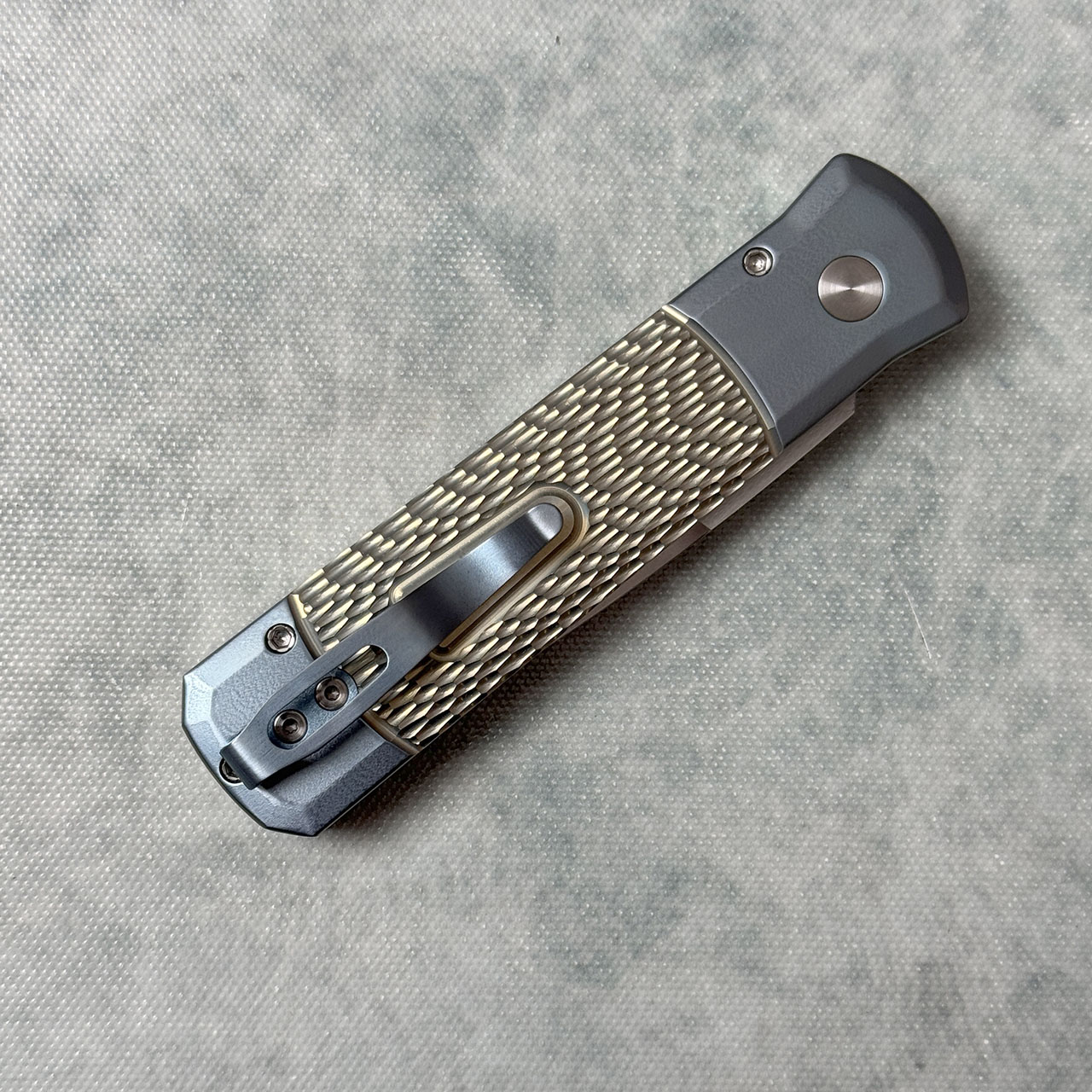 Pro-Tech Godson Custom Light Blue/Chartreuse Jigged Titanium Handle Satin Blade 2025GODSONCUSTOM001