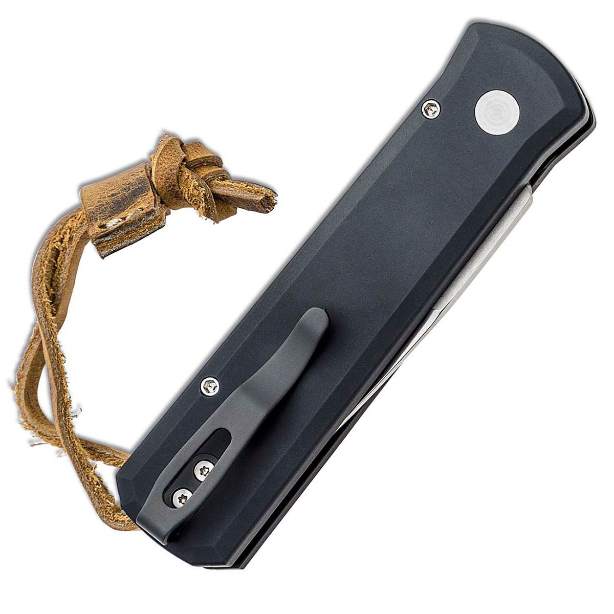 Pro-Tech Godson GSD Black Handle w/ Brown Leather Inlay Satin Blade 7GSD-7
