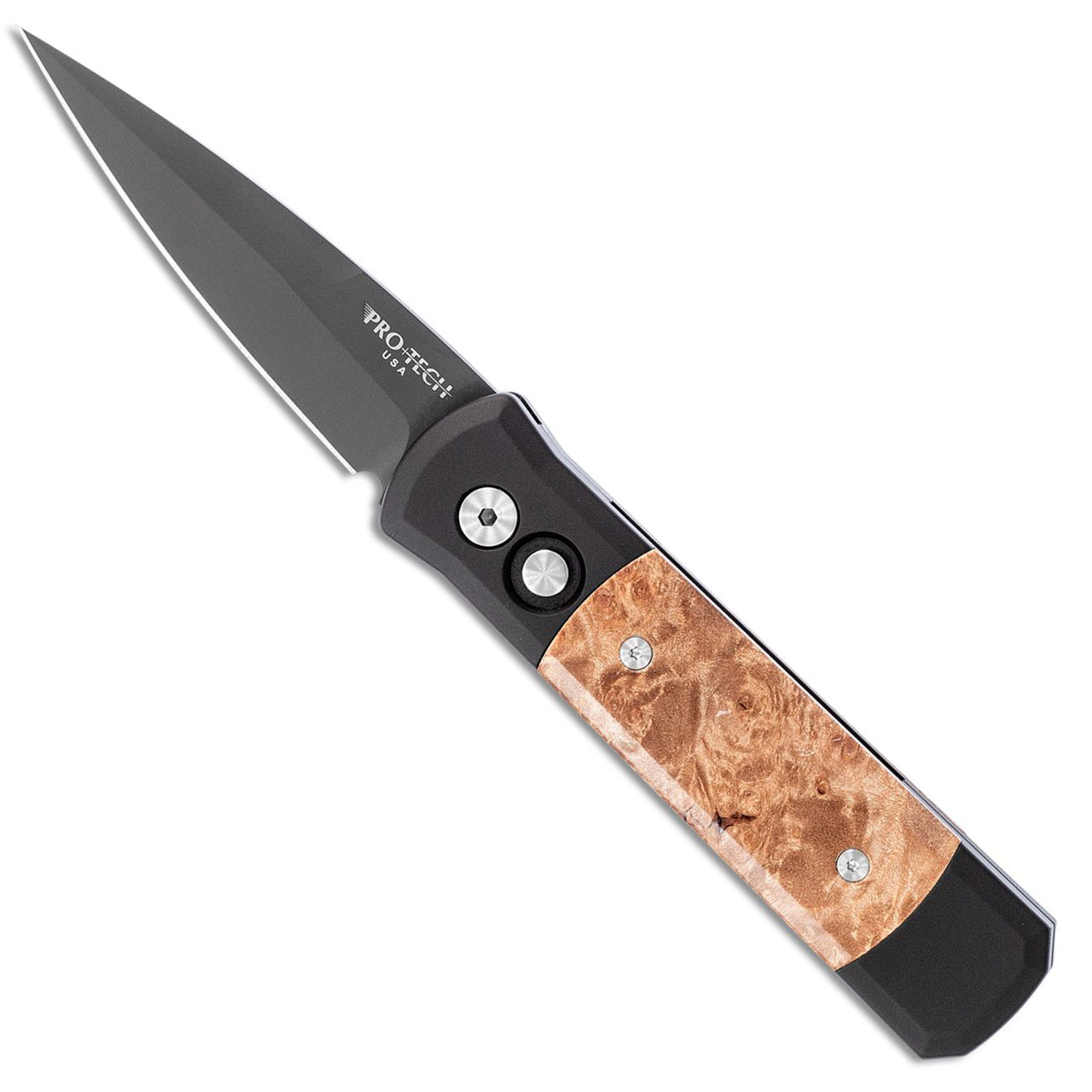 Pro-Tech Godson Maple Burl Wood Inlays Black Blade 707