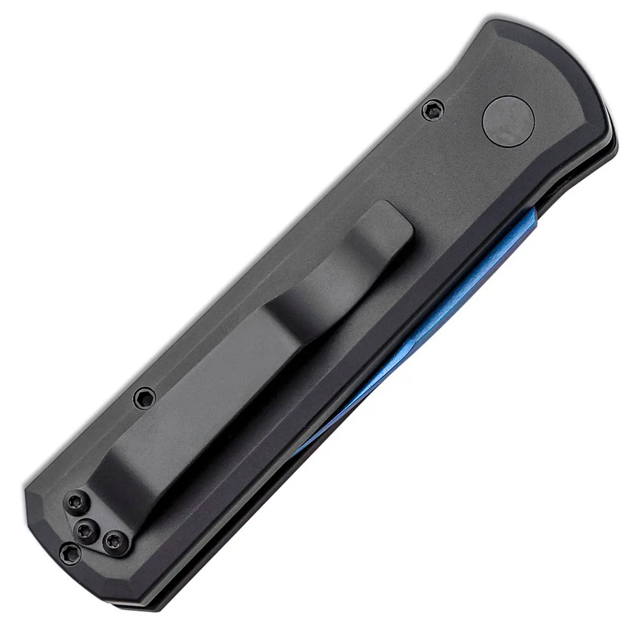 Pro-Tech Godson Solid Black Handle Sapphire Blue Blade Abalone Button 721-SB
