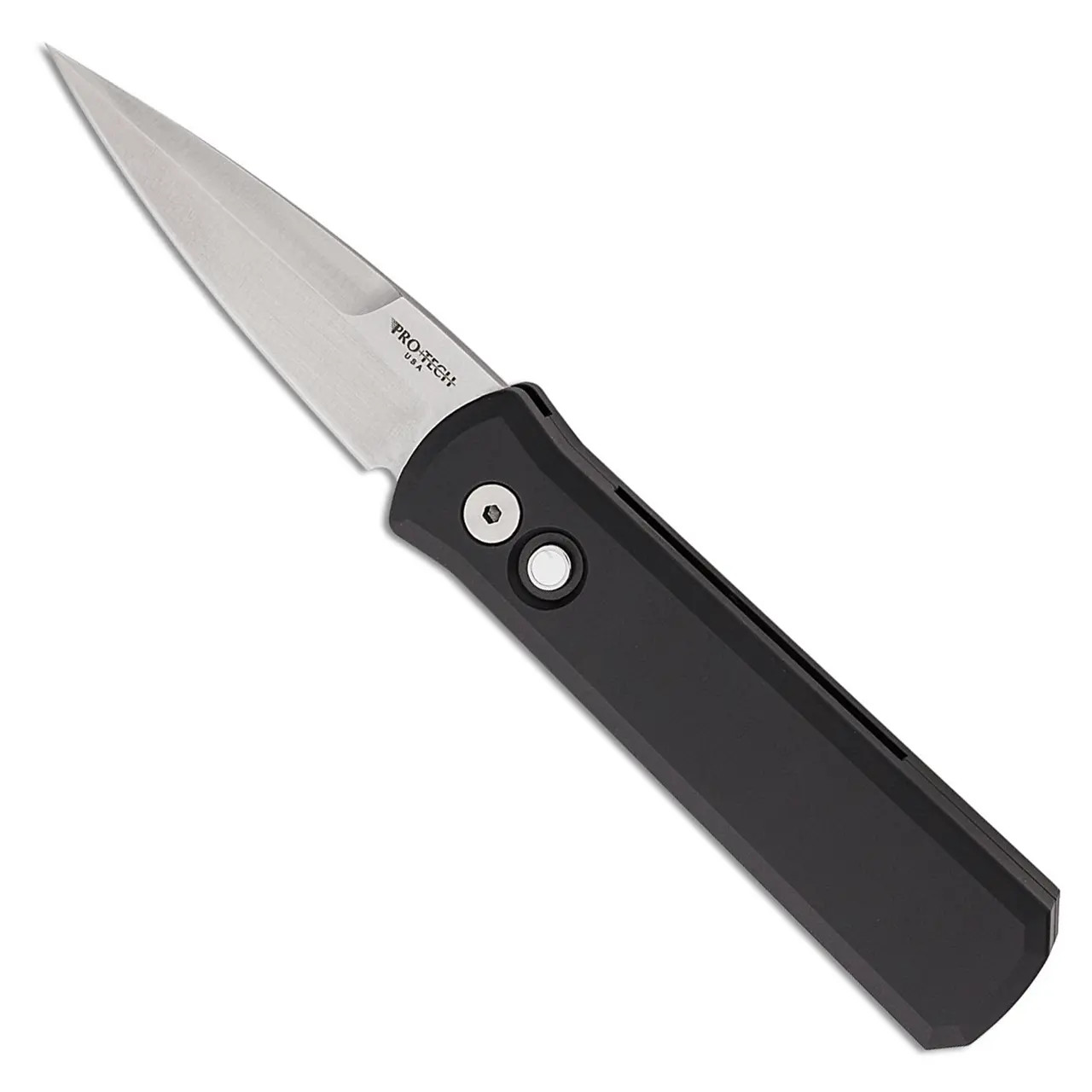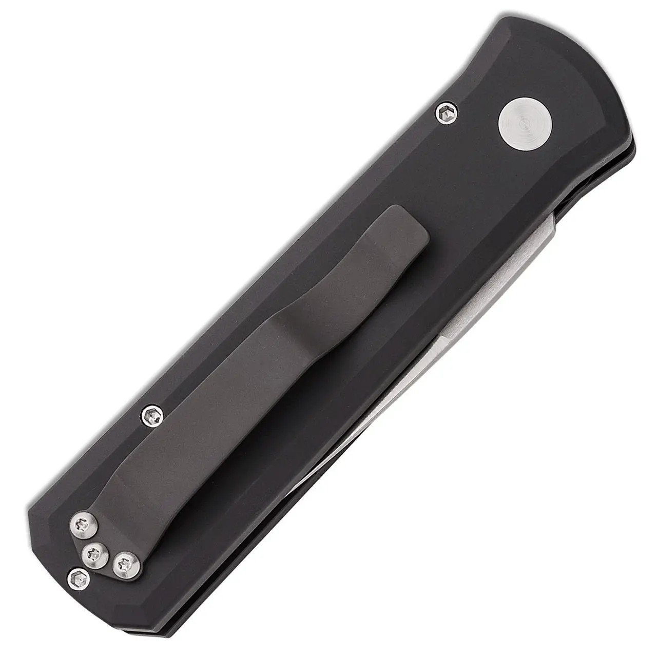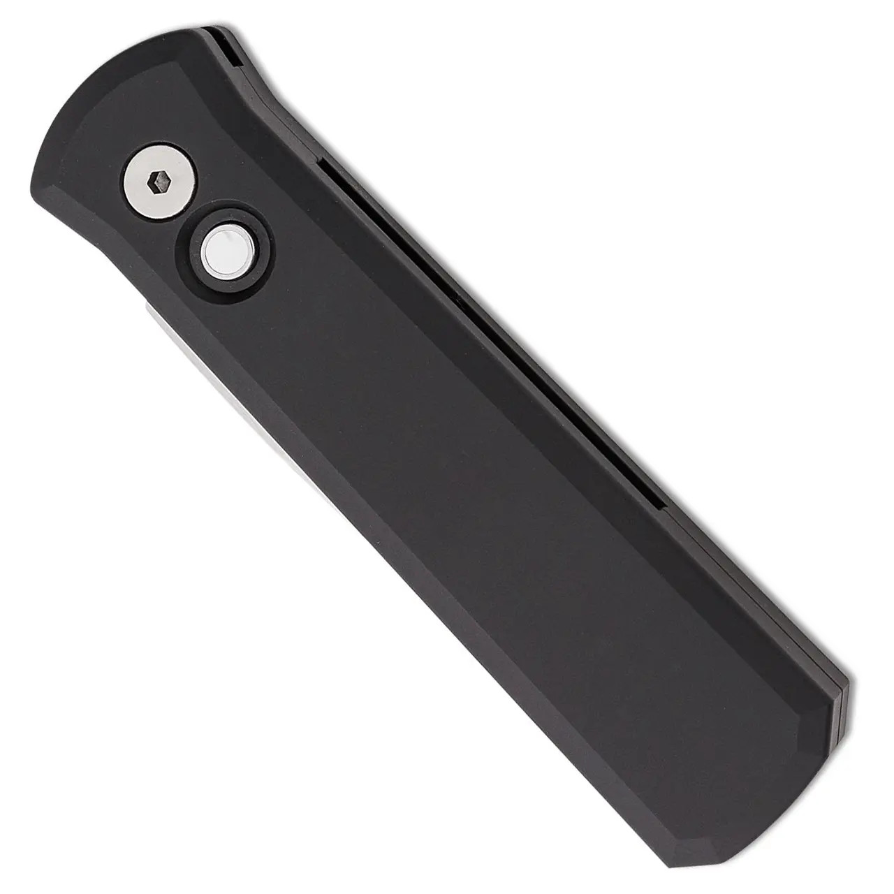 Pro-Tech Godson Solid Black Handle Satin Blade Pearl Button Limited Edition 721-LTD