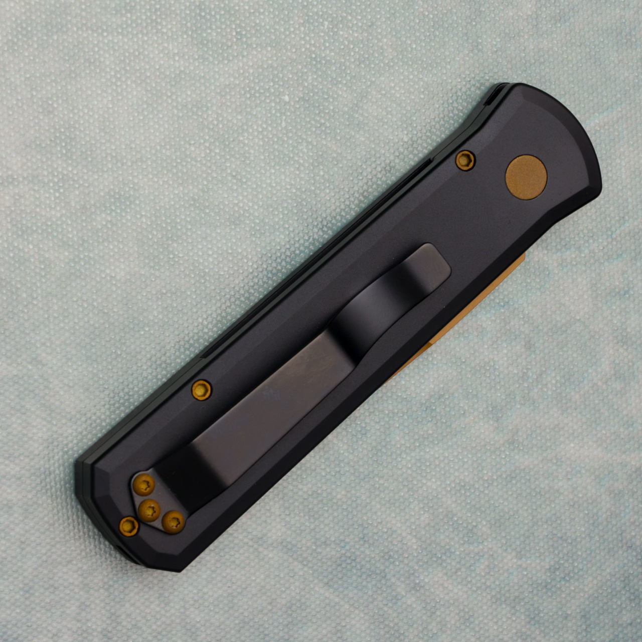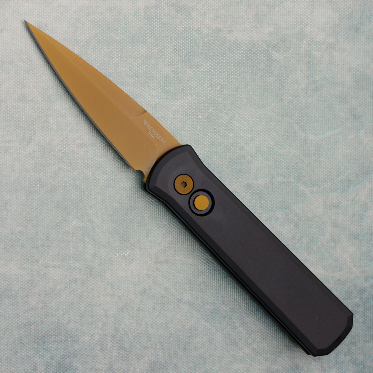 Pro-Tech Godson Solid Black Handle Tan PVD Blade 721-TAN