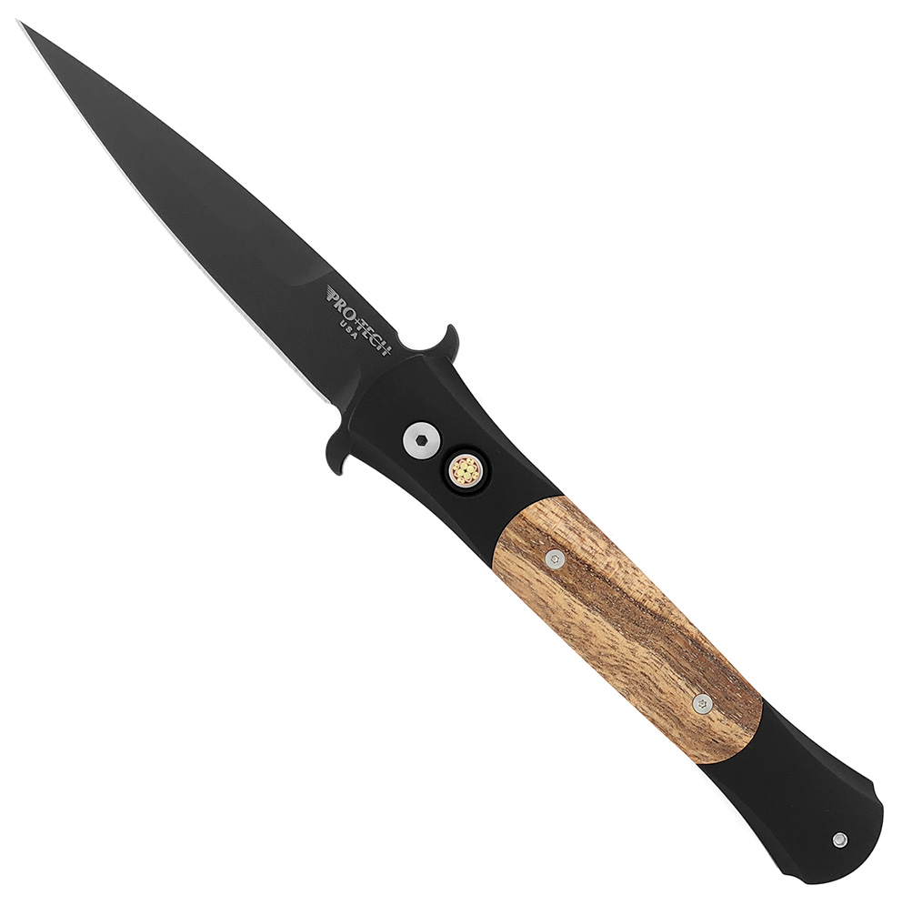 Incredible big bayonet blade on these fully 3D machined Italian Inspired auto's! Integrated wing guards on the blade give the DON series a more old school look - the Large version of the knife is really something to behold. Even on this large scale piece the famous Pro-Tech snap is executed beautifully every time you push the button. A classic Italian design with modern American machining makes this knife something to behold. The top of the line Pro-Tech model.