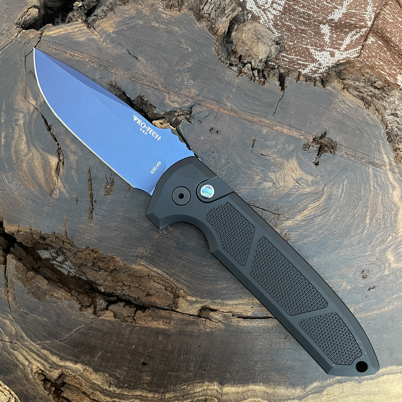 Pro-Tech Les George Rockeye Auto Textured Black Handle Sapphire Blue S35-VN Blade LG307-SB