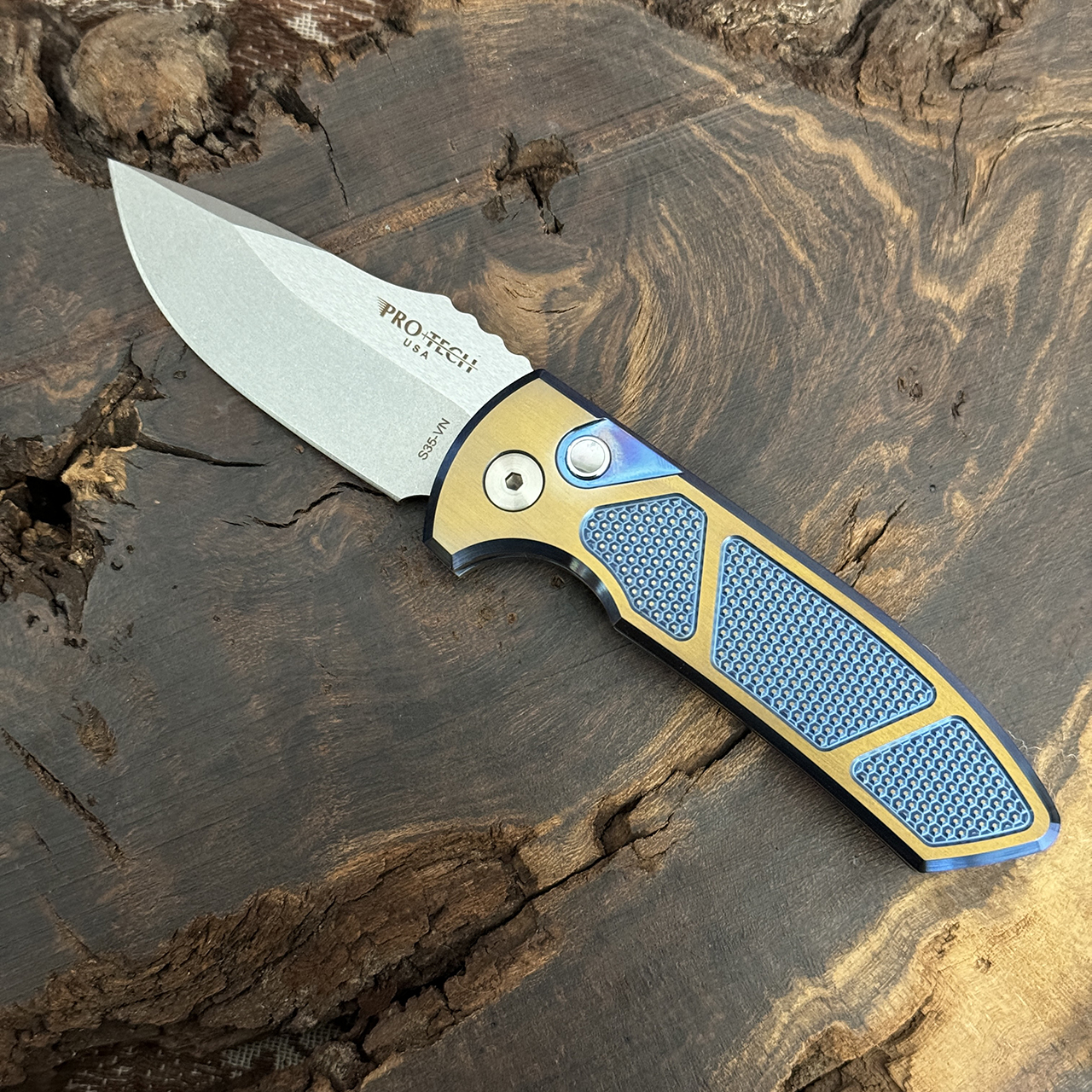 Pro-Tech Les George SBR Custom 006 Two-Tone Blue Bronze Titanium HandlesStonewash S35VN Blade Blue Titanium Clip