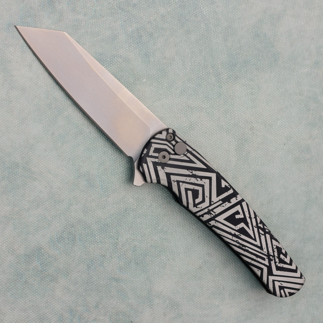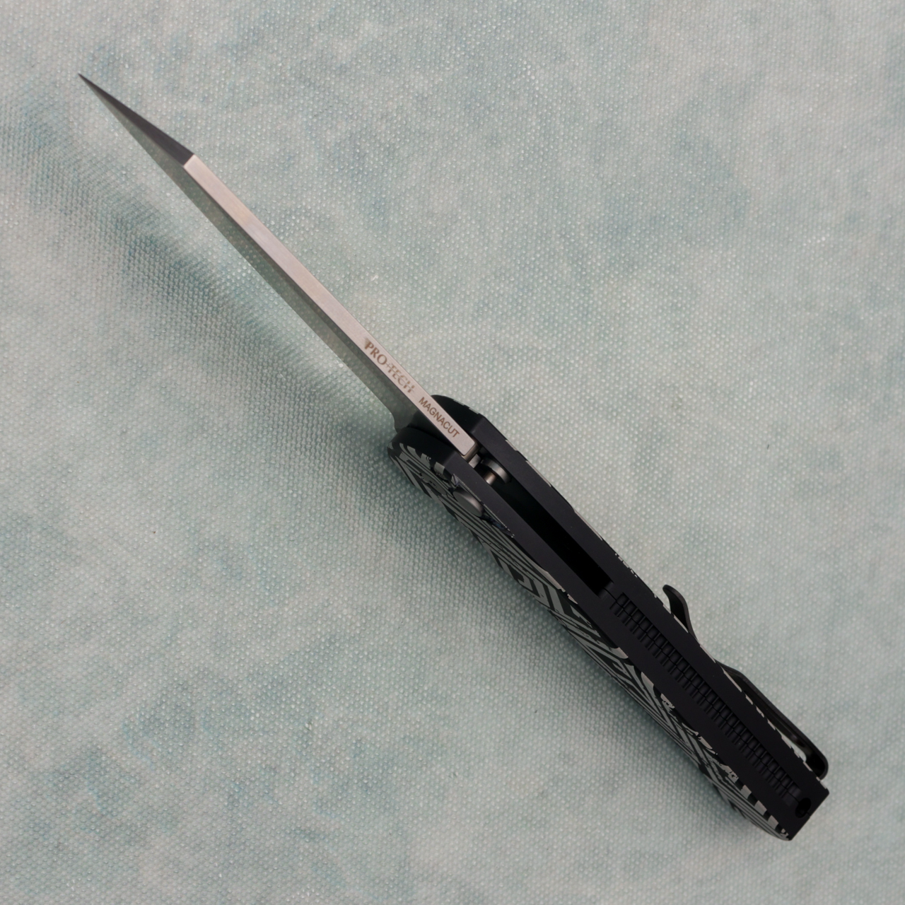 Pro-Tech Malibu Button Lock Flipper Reverse Tanto Black Abstract Lasered Handle Stonewash MagnaCut Blade 5401 AE CUSTOM SHOP