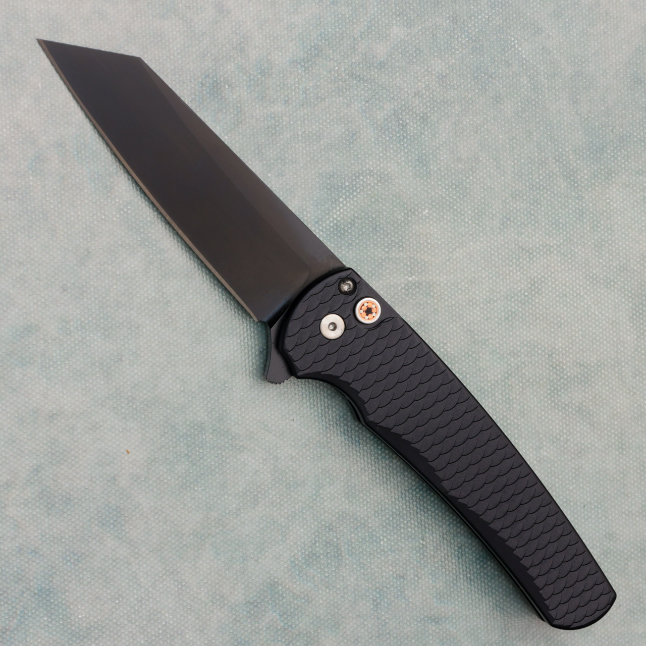 Pro-Tech Malibu Button Lock Flipper Reverse Tanto Black Dragon Scale Textured Handle DLC MagnaCut Blade SHOT26.MALIBU.1