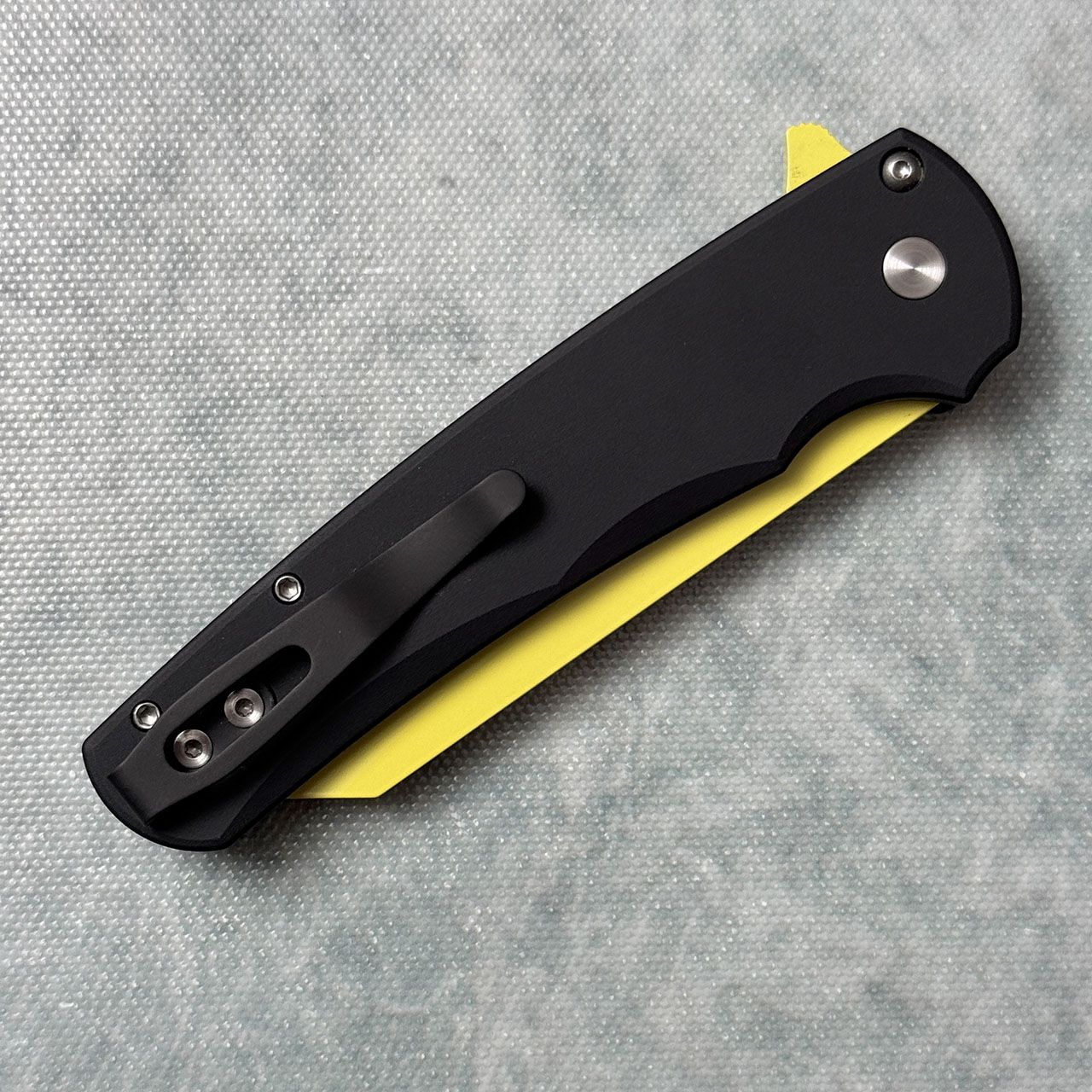 Pro-Tech Malibu Button Lock Flipper Reverse Tanto Black Handle Yellow 20CV Blade