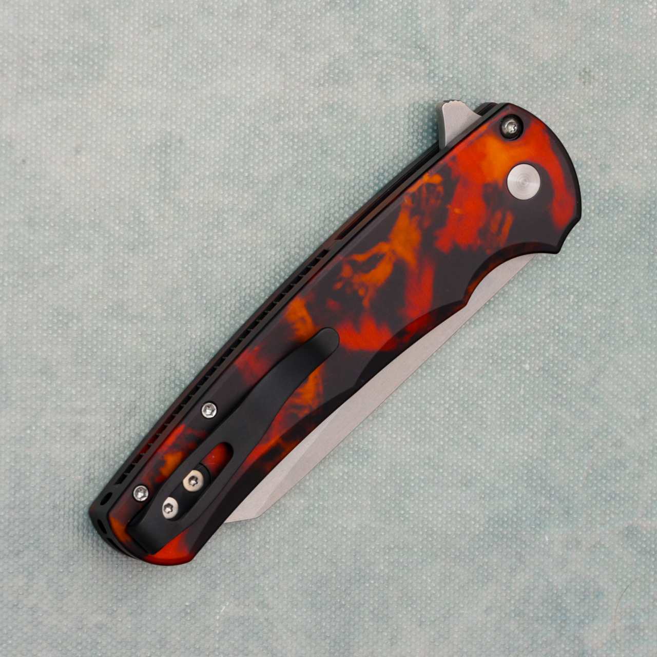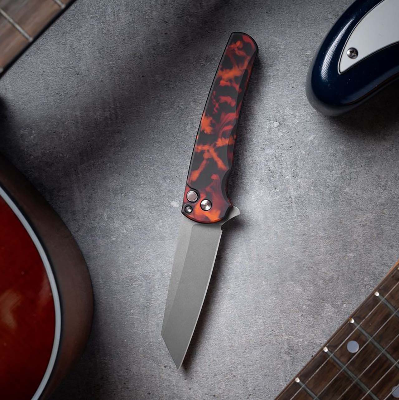 Pro-Tech Malibu Button Lock Flipper Reverse Tanto Del Fuego Custom Anodized Handle Stonewash MagnaCut Blade 5401-DF