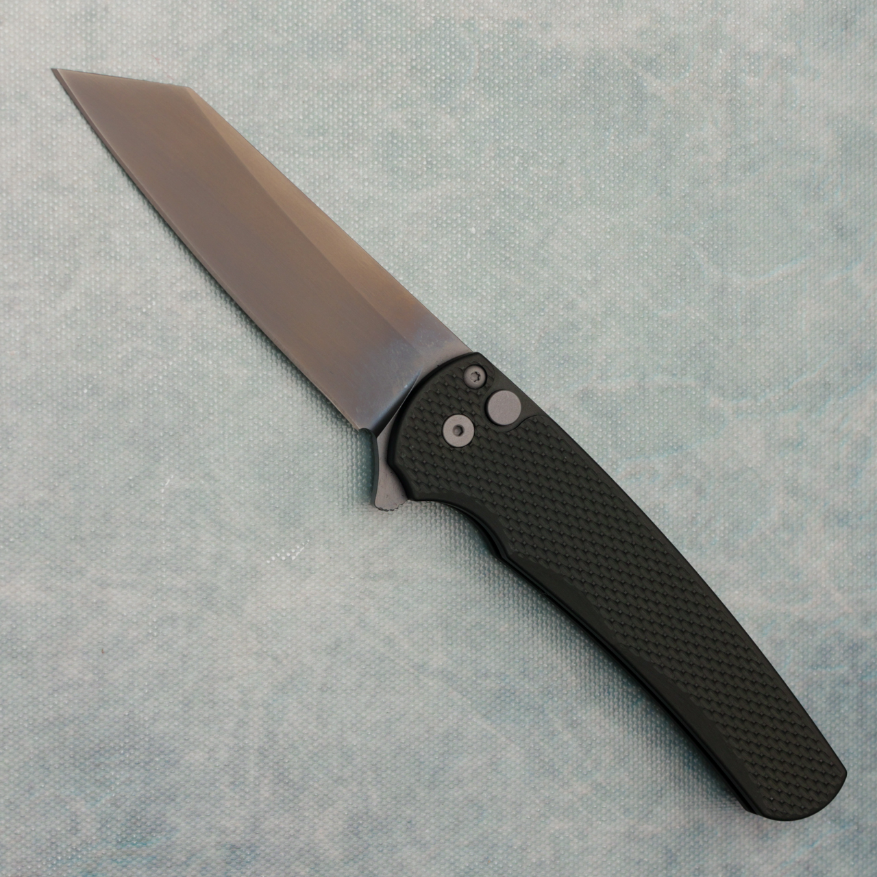 Pro-Tech Malibu Button Lock Flipper Reverse Tanto Green Textured Handle Smoky Grey DLC MagnaCut Blade 5406-SGGREEN