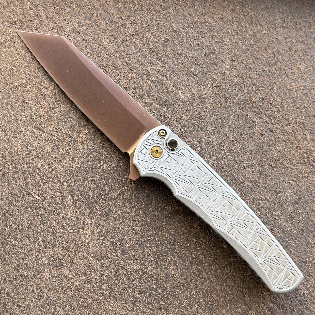 Pro-Tech Malibu Button Lock Flipper Reverse Tanto Nexus Textured 2-tone 17-4 Steel Handle Copper Rose PVD MagnaCut Blade 2026MALIBUCUSTOM003