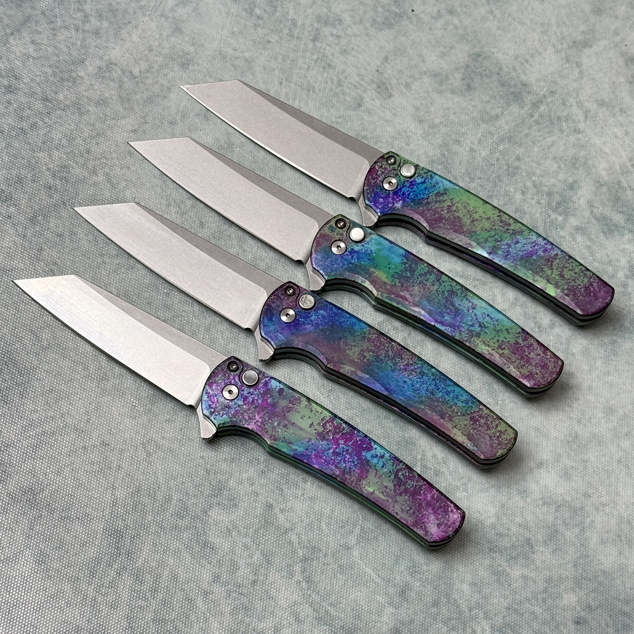 Pro-Tech Malibu Button Lock Flipper Reverse Tanto Northern Lights Anodized Handle Stonewashed Blade American Edge Exclusive AE.MALIBU1