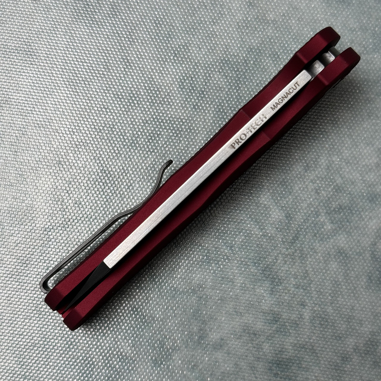 Pro-Tech Malibu Button Lock Flipper Reverse Tanto Red Textured Handle Stonewash MagnaCut Blade 5405-RED