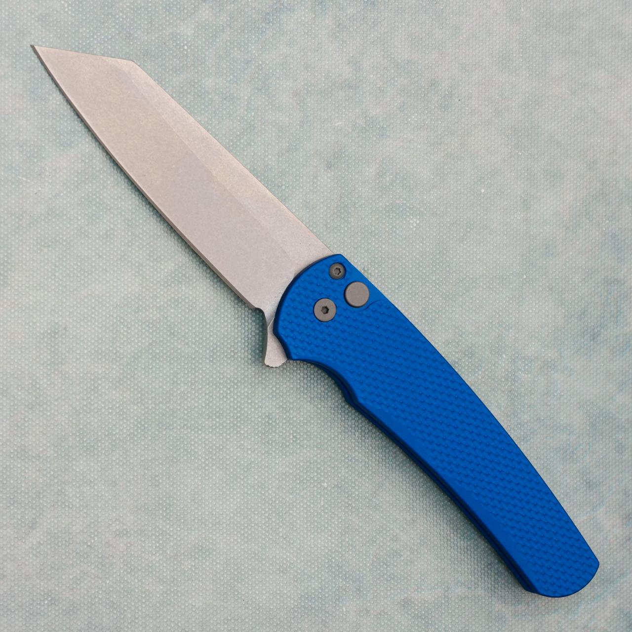 Pro-Tech Malibu Button Lock Flipper Reverse Tanto Textured Blue Handle Stonewash M390 Blade DLT.MALIBU.3 (Pre-owned)