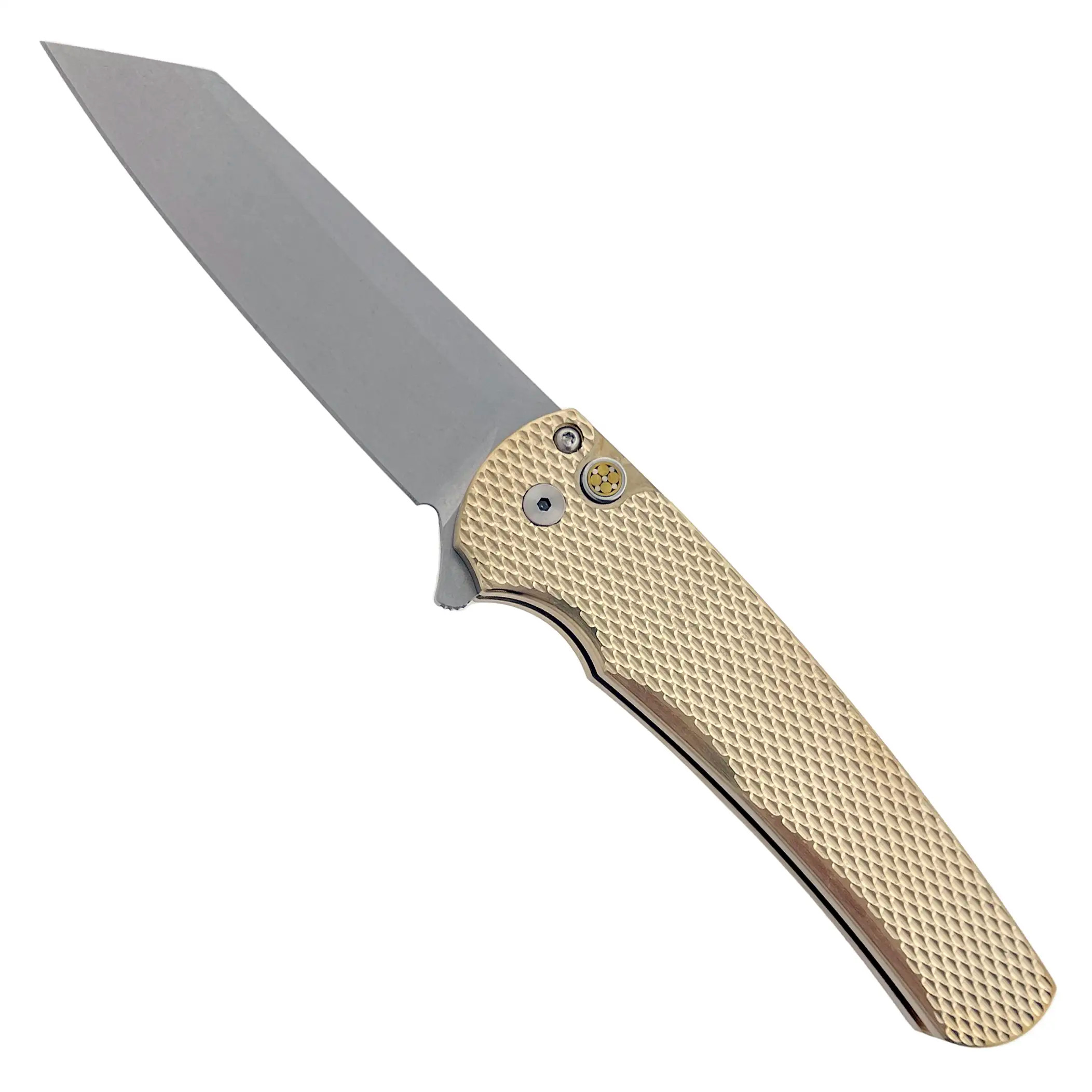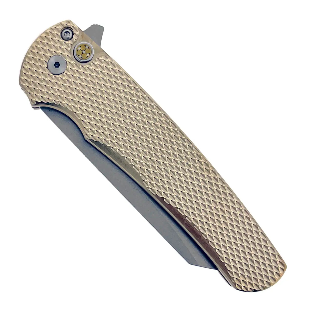 Pro-Tech Malibu Button Lock Flipper Reverse Tanto Textured Bronze AL Handle Stonewash Blade Mosaic Button 5211