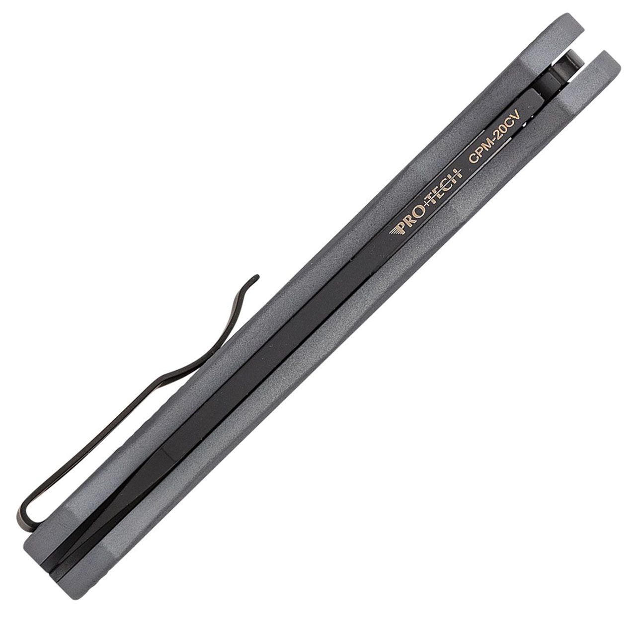 Pro-Tech Malibu Button Lock Flipper Reverse Tanto Textured Grey Handle DLC Blade 5206-GREY