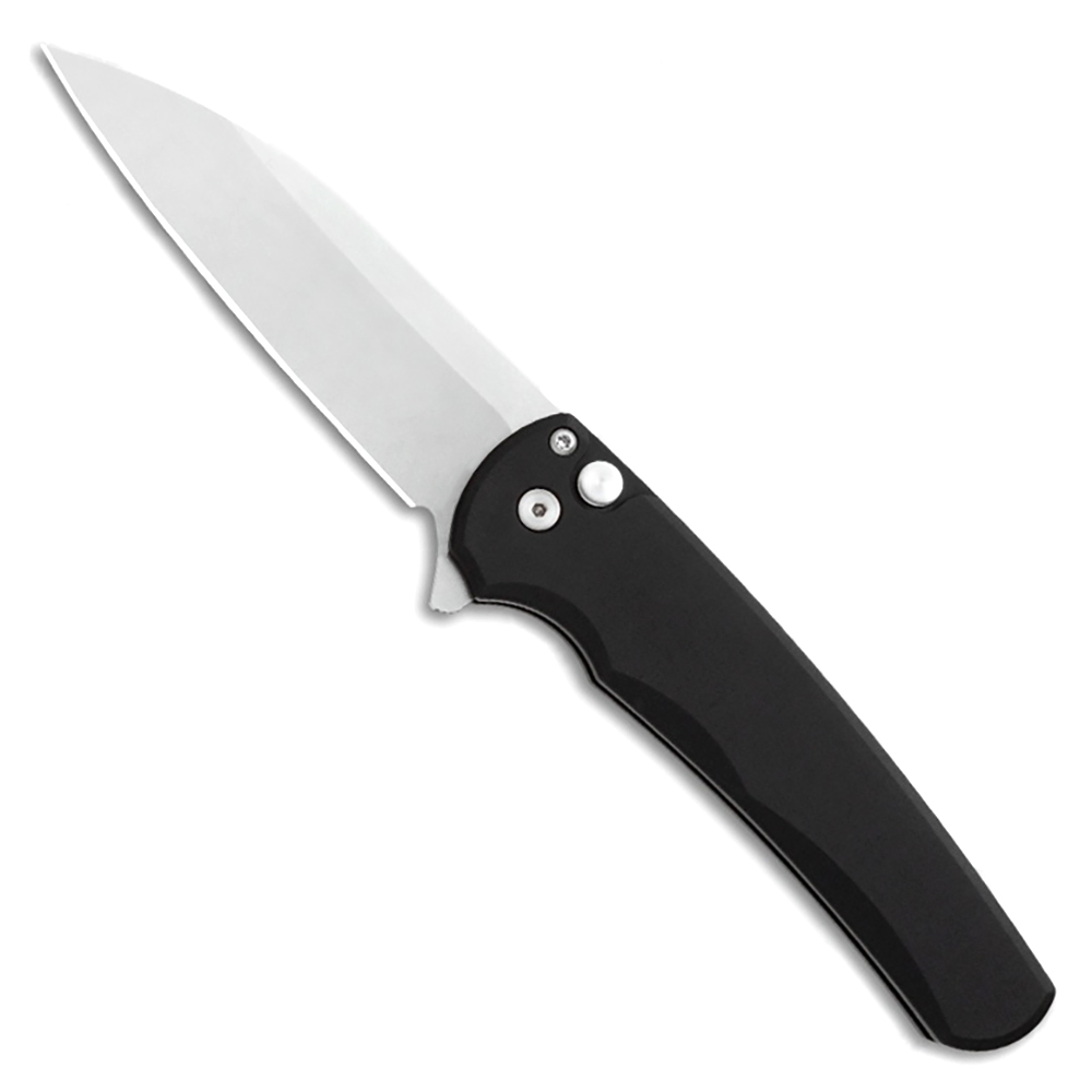 Pro-Tech Malibu Button Lock Flipper Wharncliffe Black Handle Stonewash Blade 5101