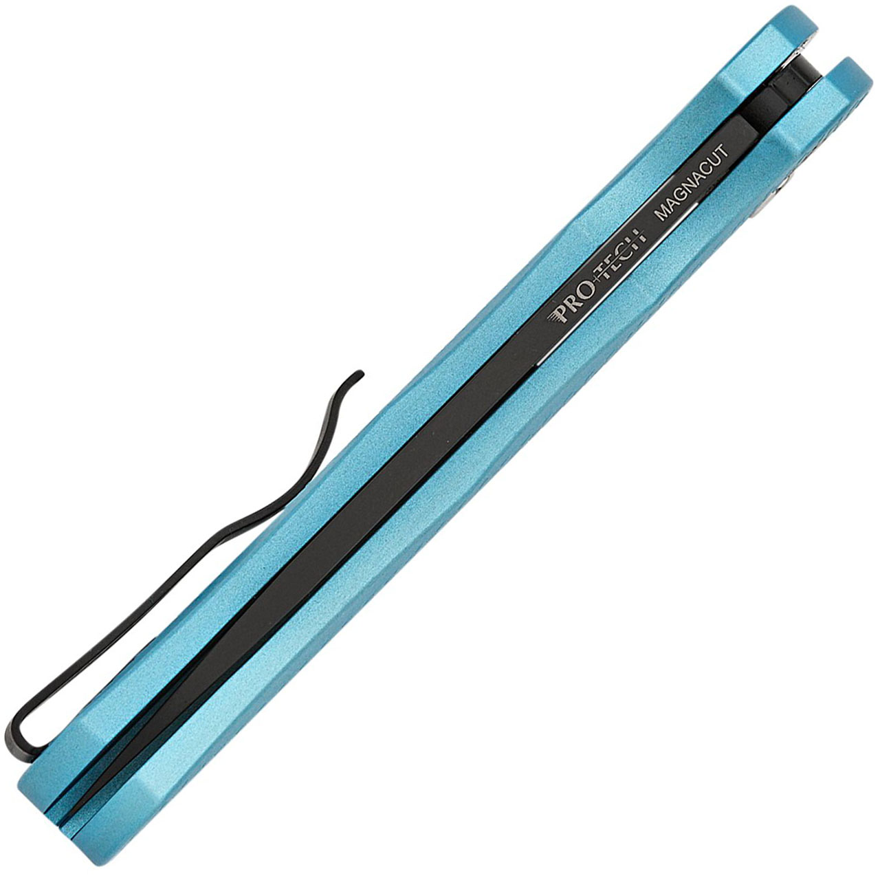 Pro-Tech Malibu Button Lock Flipper Wharncliffe NYCKS 2024 Dragon Scale Textured Teal Handle DLC Magnacut Blade Pearl Button
