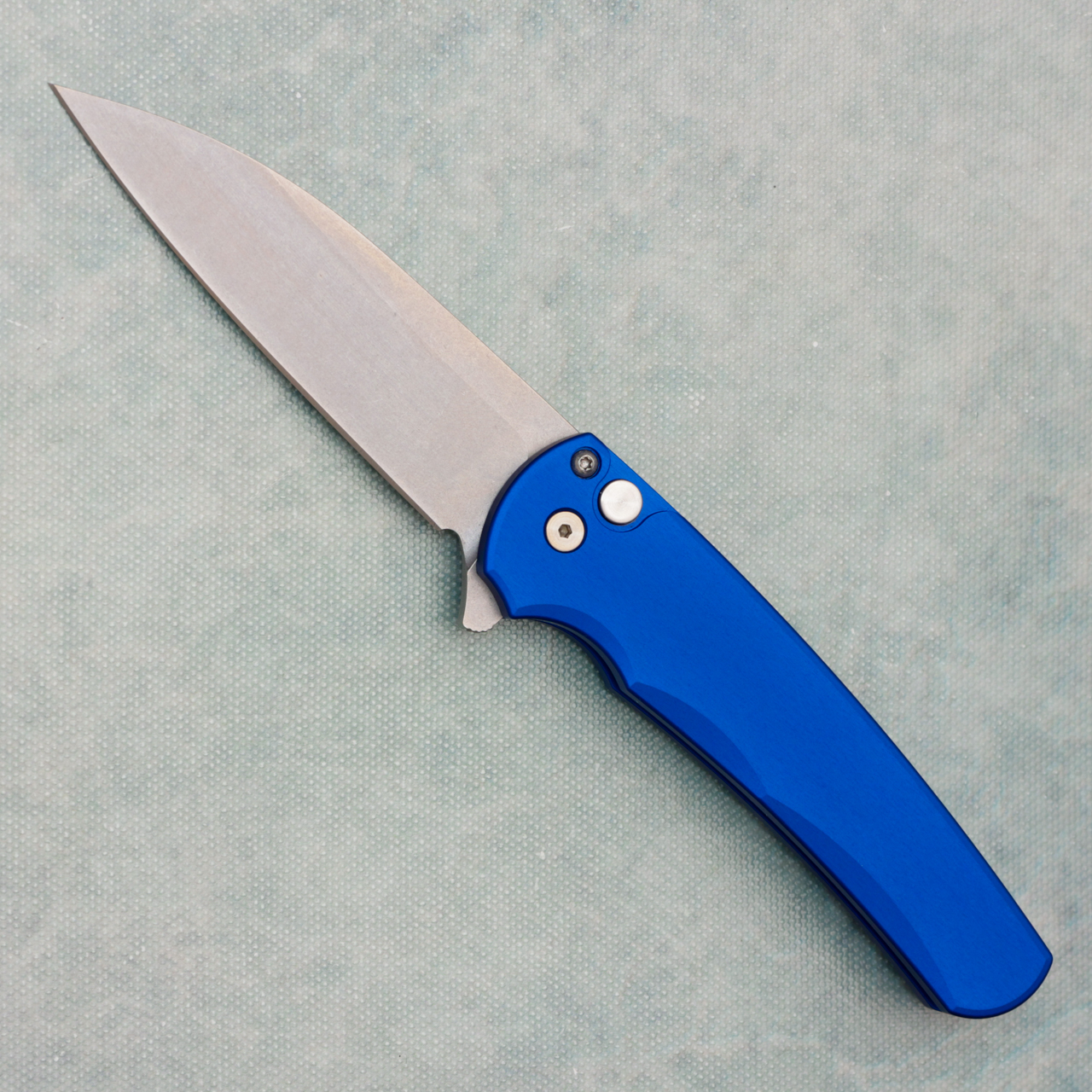 Pro-Tech Malibu Button Lock Flipper Wharncliffe Solid Blue Handle Stonewash Magnacut Blade 5301-BLUE (Pre-owned)
