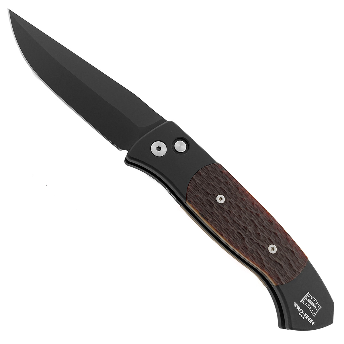 Pro-Tech Medium Brend 3 Auto Black Handle w/ Amber Jigged Bone Inlays DLC Blade 1362