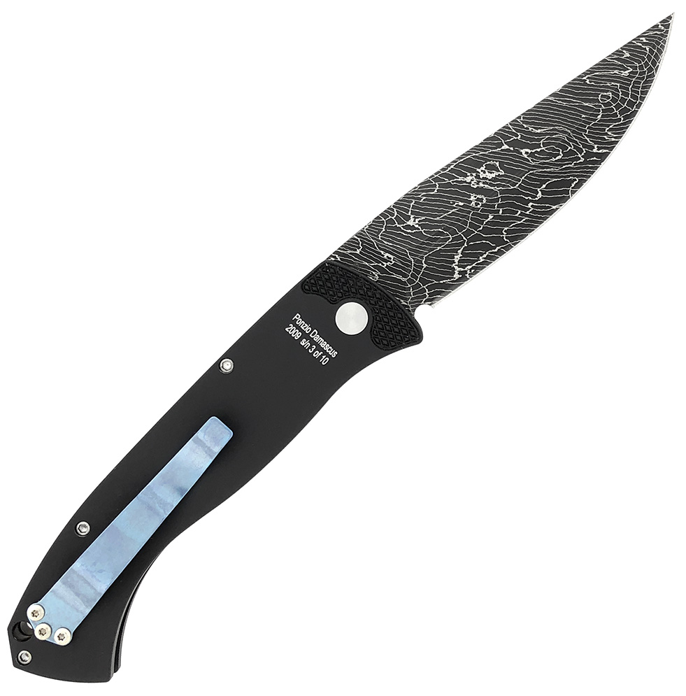 Pro-Tech Medium Brend Auto #3 Custom USA Knurl Ponzio Damascus Blade Pearl Button