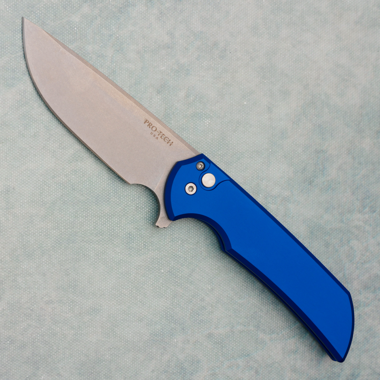 Pro-Tech Mordax Button Lock Flipper Blue Handle Stonewash CPM-20CV Blade MDX-28732-13 (Pre-owned)