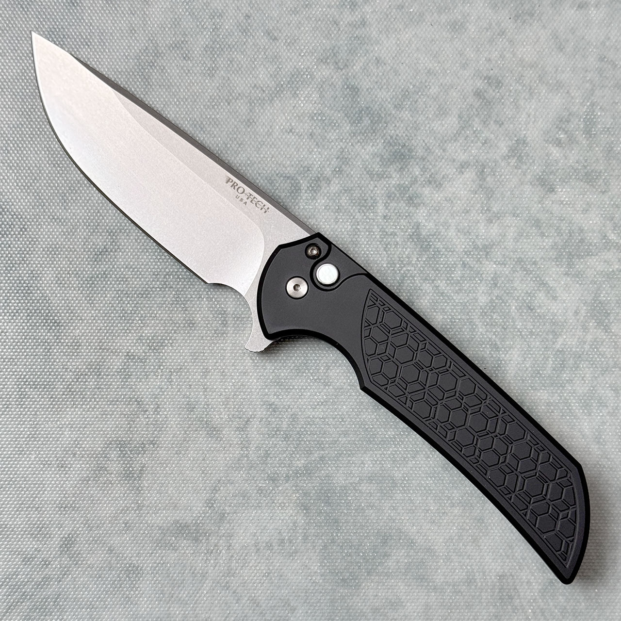 Pro-Tech Mordax Button Lock Flipper Gridlock Textured Black Handle Stonewash Magnacut Blade 2025CCKSSPRINGMORDAX.1