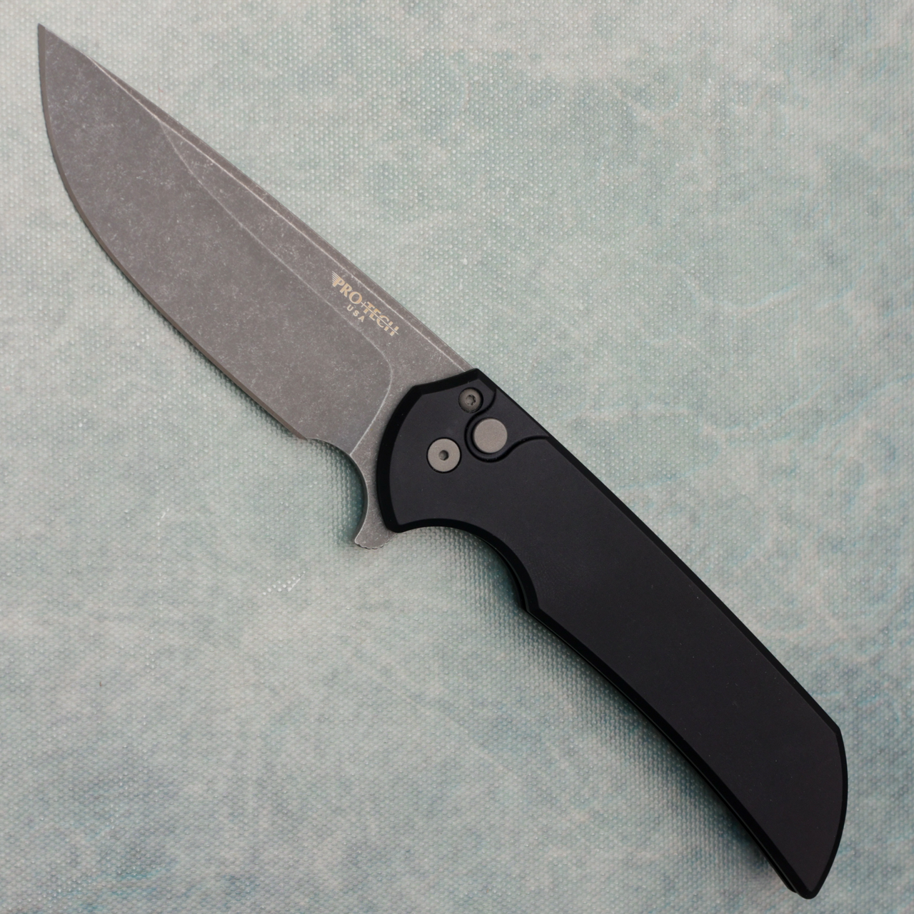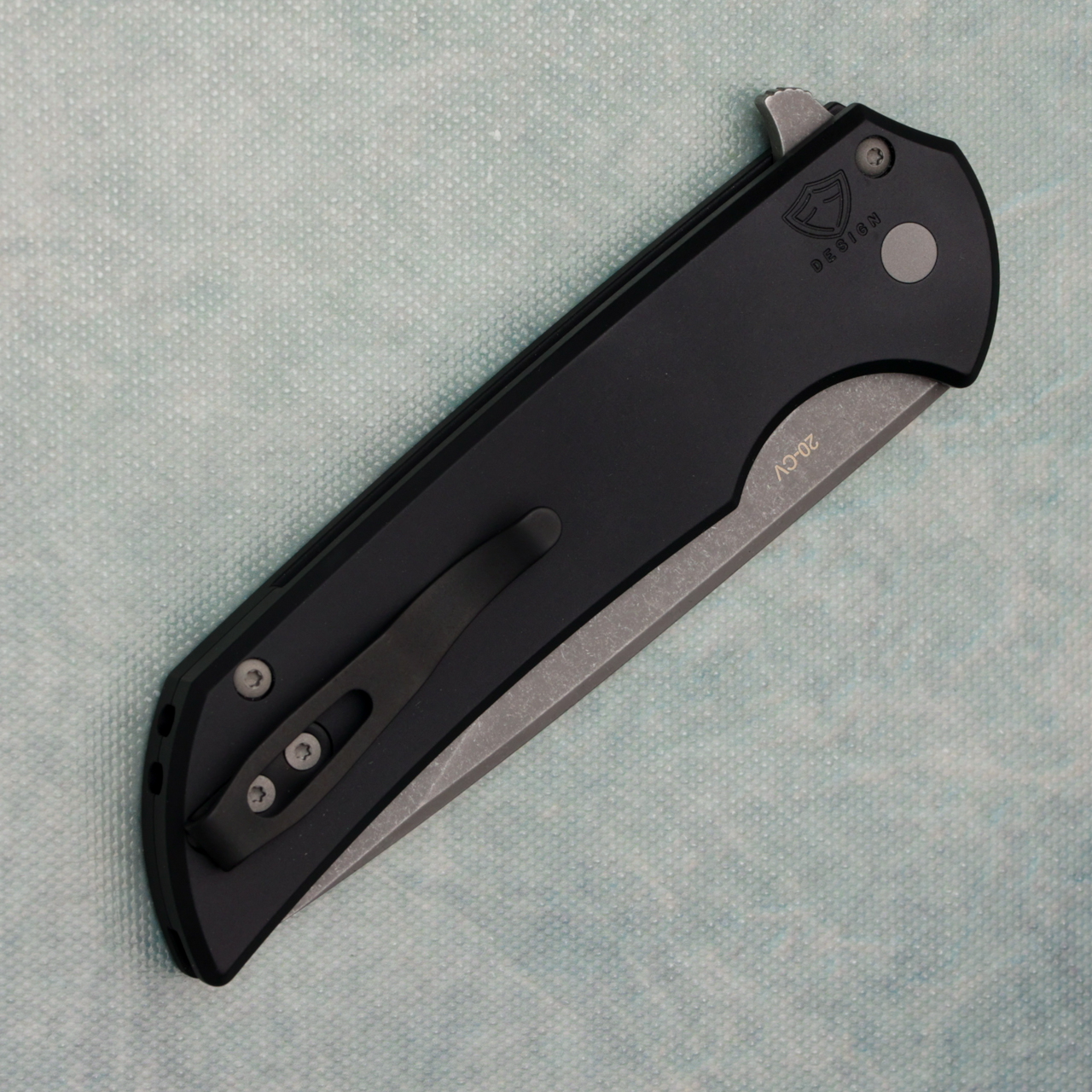 Pro-Tech Mordax Button Lock Flipper Solid Black Handle Acidwash 20CV Blade MX101-AW20CV