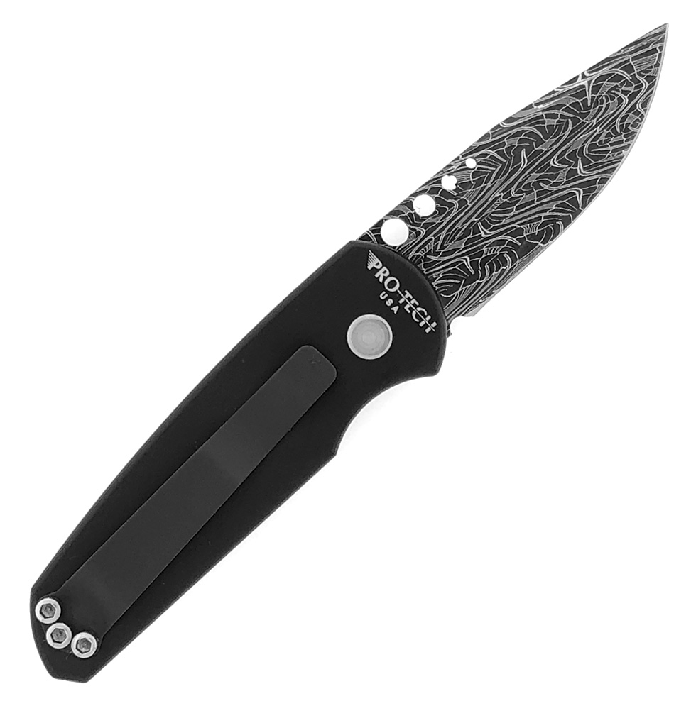 Pro-Tech Runt 2 Custom Satin Black Eggerling Damascus Blade Pearl Button