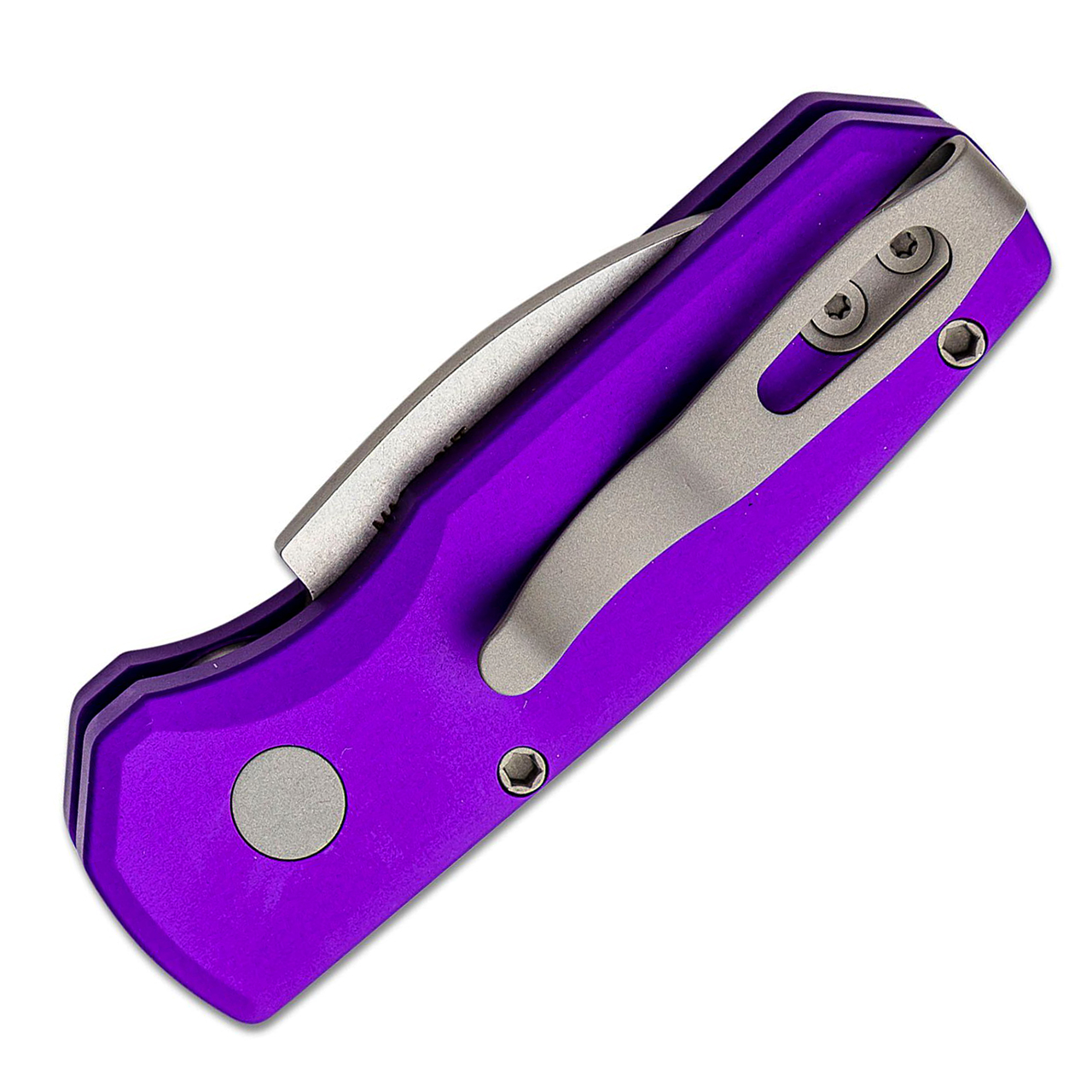 Pro-Tech Runt 5 Wharncliffe Smooth Purple Handle Stonewash Magnacut R5301-PURPLE
